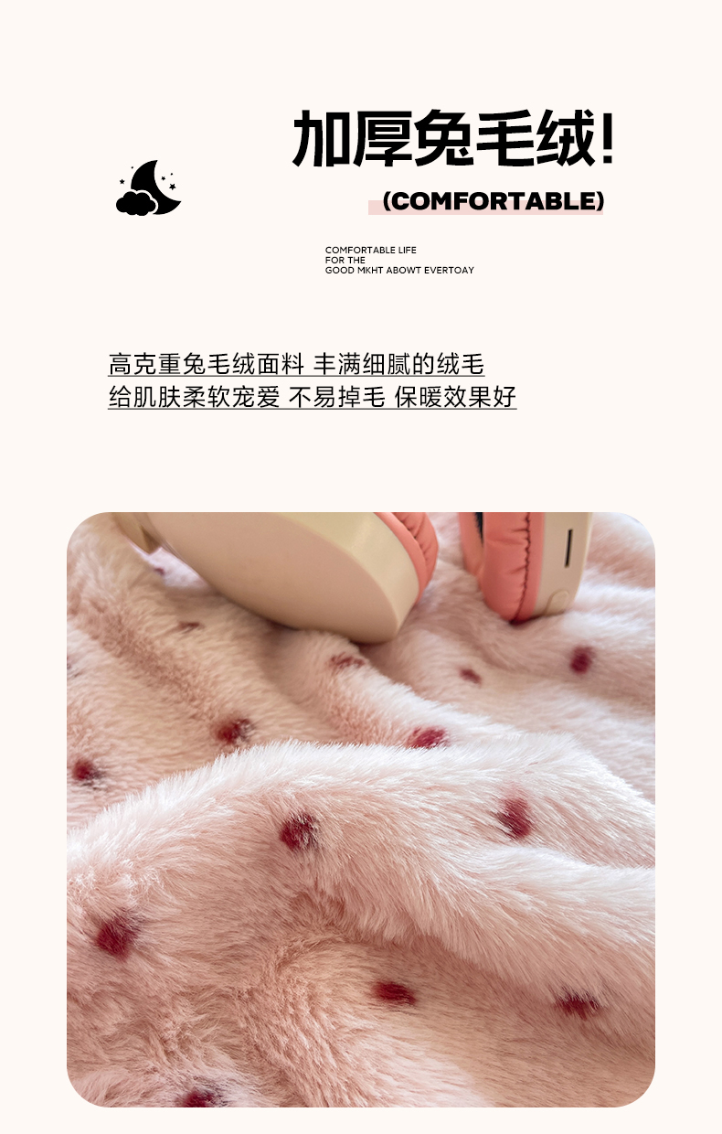 眠势力 2025新款兔毛绒毛毯冬季加绒加厚盖毯兔兔绒保暖毯子带拉链-小清新系列 经典波点