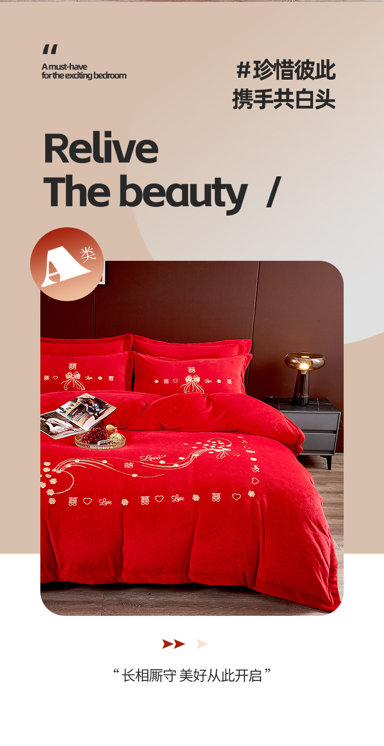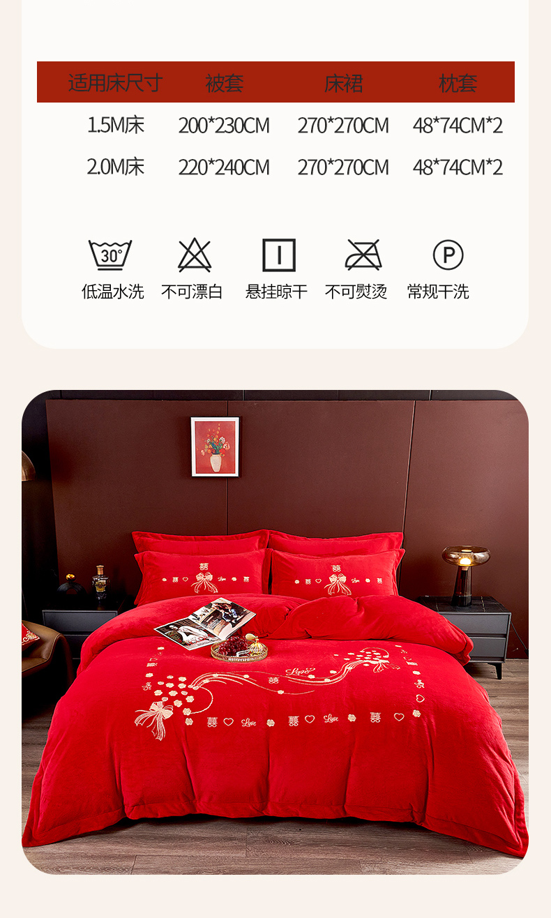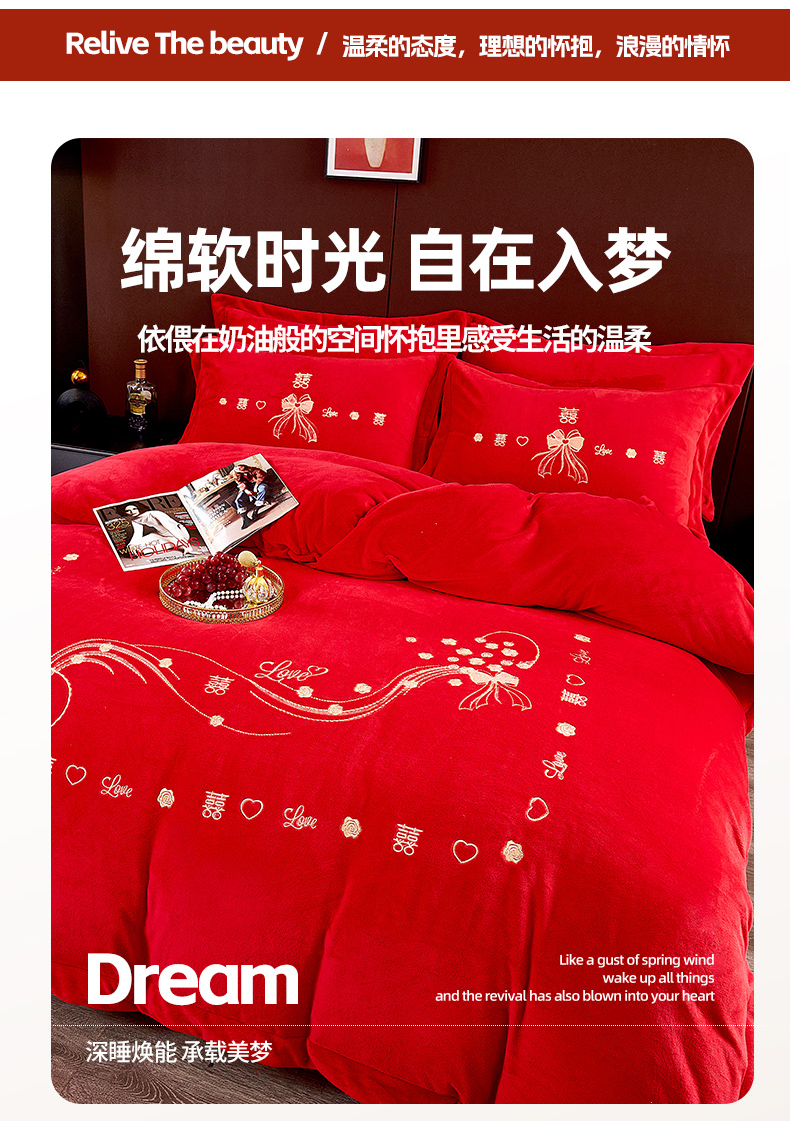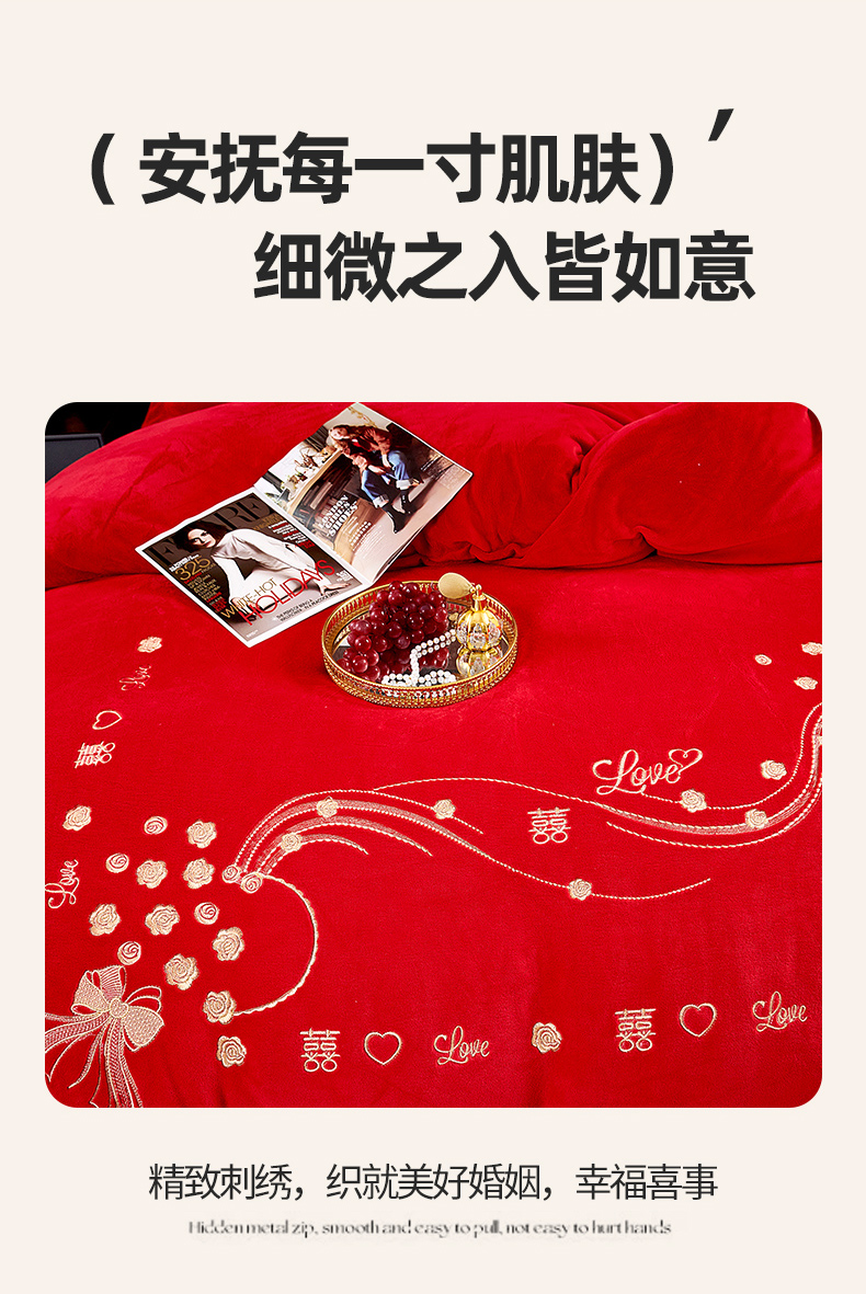 (总)皇潮婚庆馆 2025新款婚庆牛奶绒刺绣床裙四件套系列,吉祥如意,龙华凤贵,喜嫁,喜事连连,心心相印,新婚快乐
