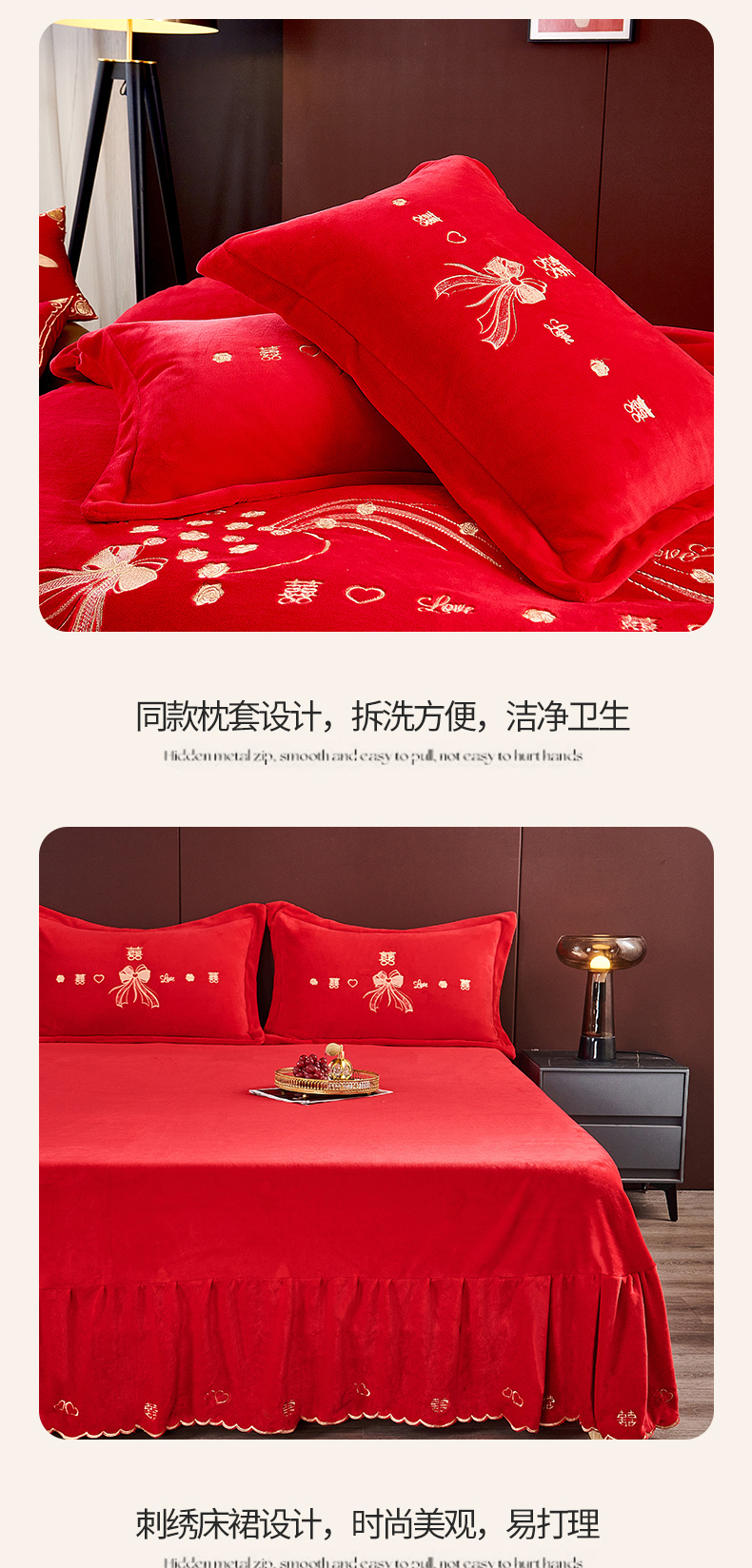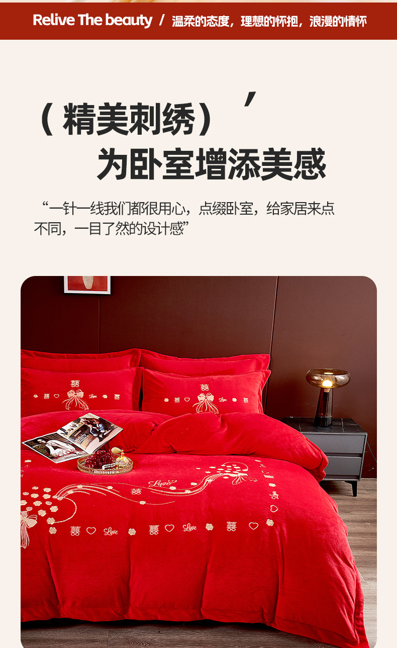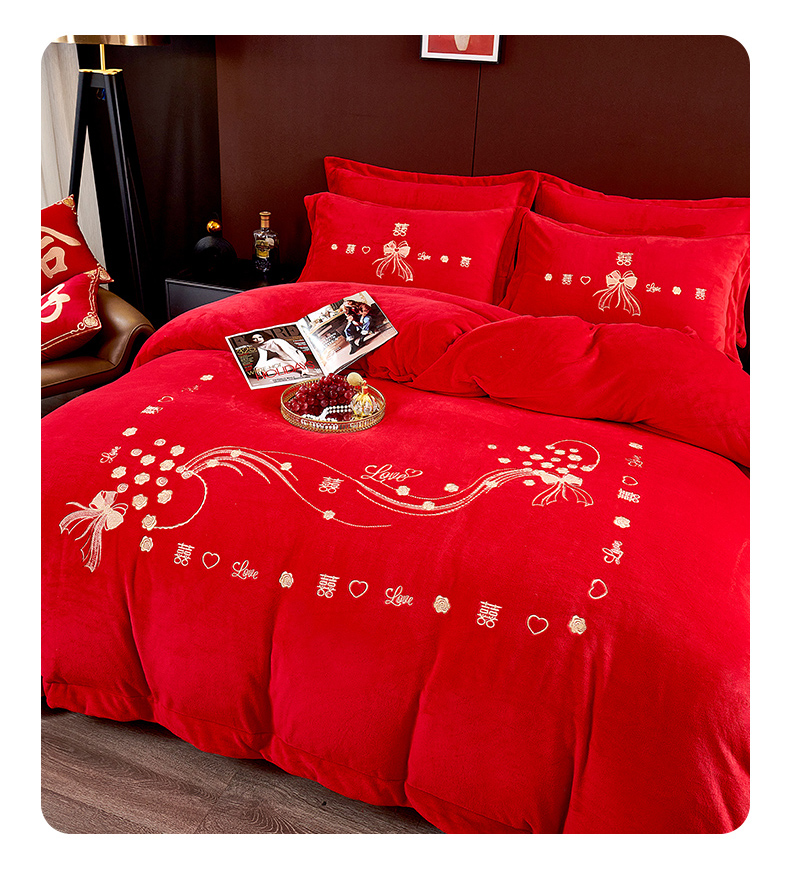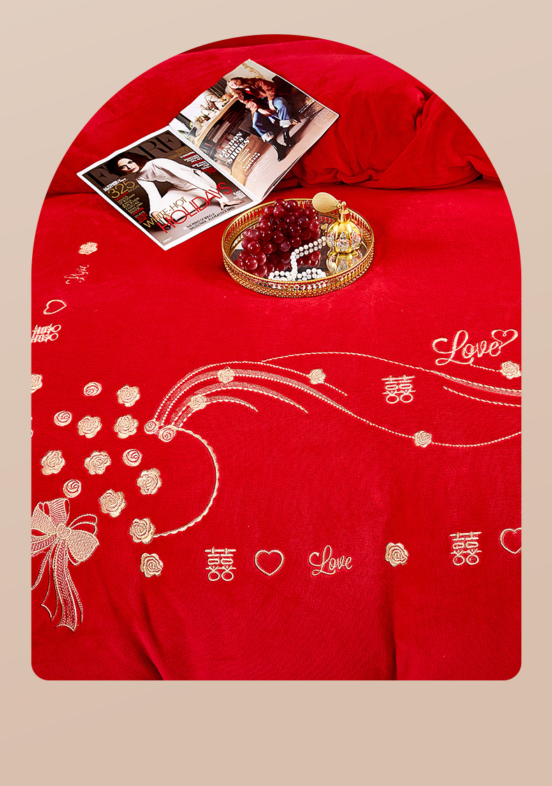 皇潮婚庆馆 2025新款婚庆牛奶绒刺绣床裙四件套系列 心心相印