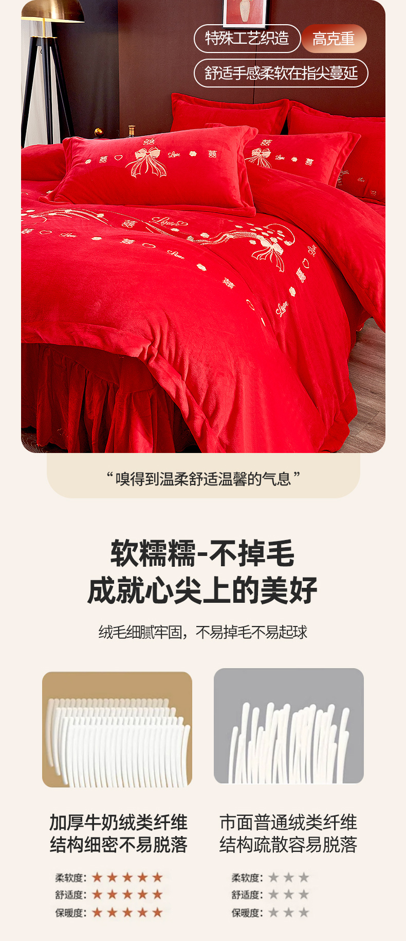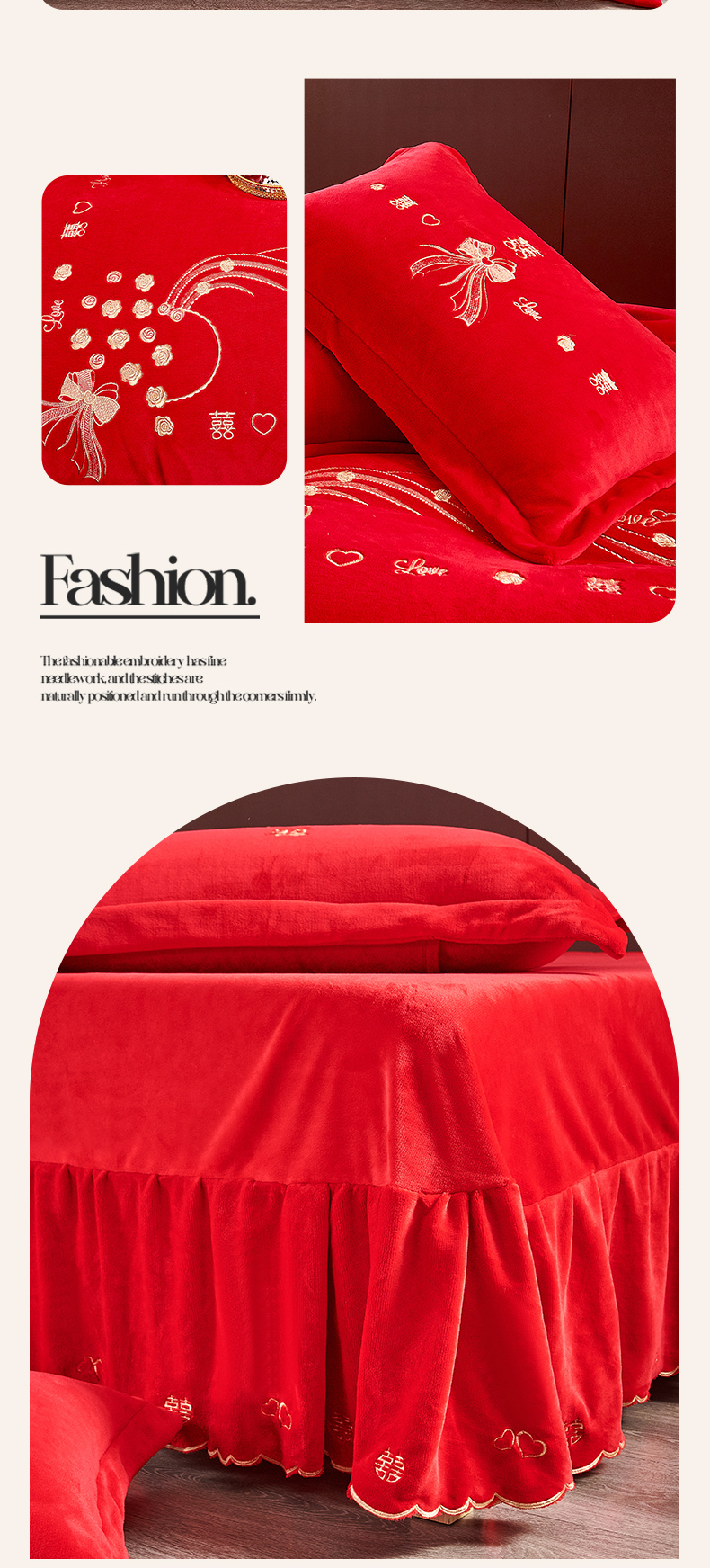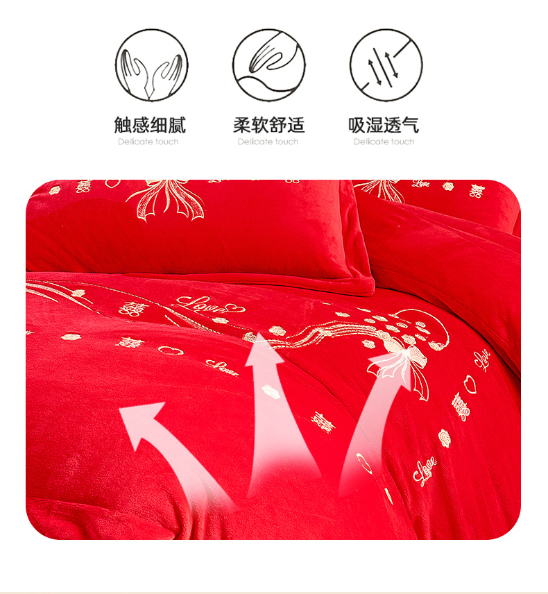 皇潮婚庆馆 2025新款婚庆牛奶绒刺绣床裙四件套系列 心心相印