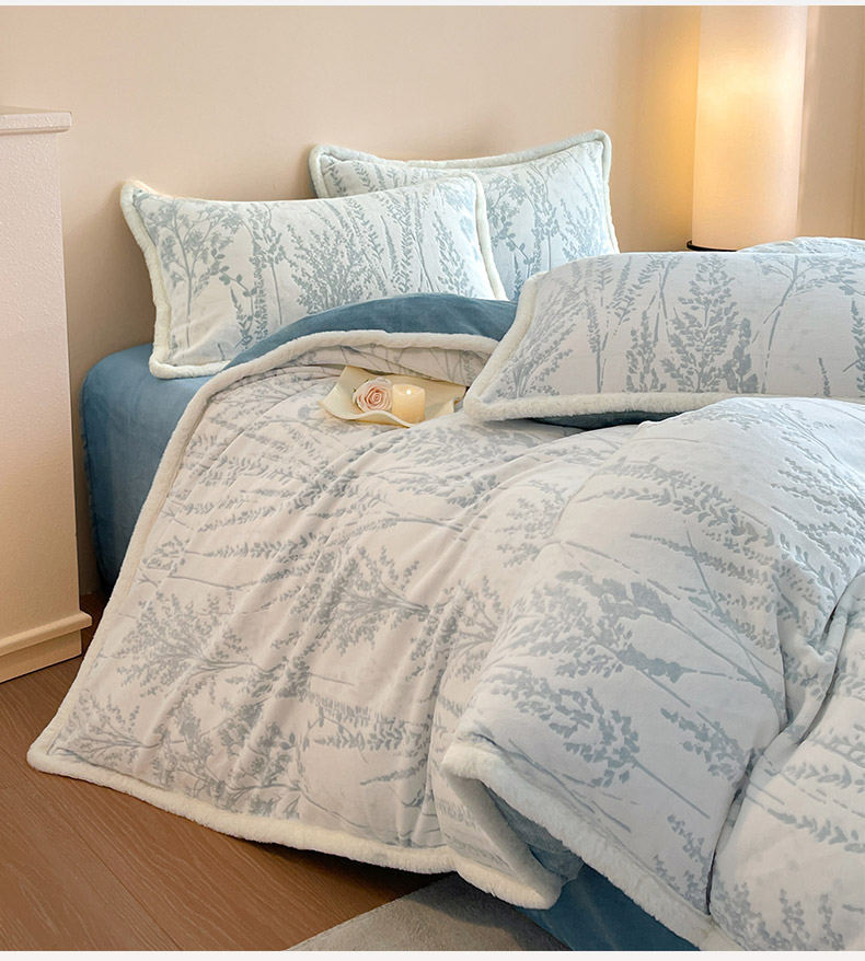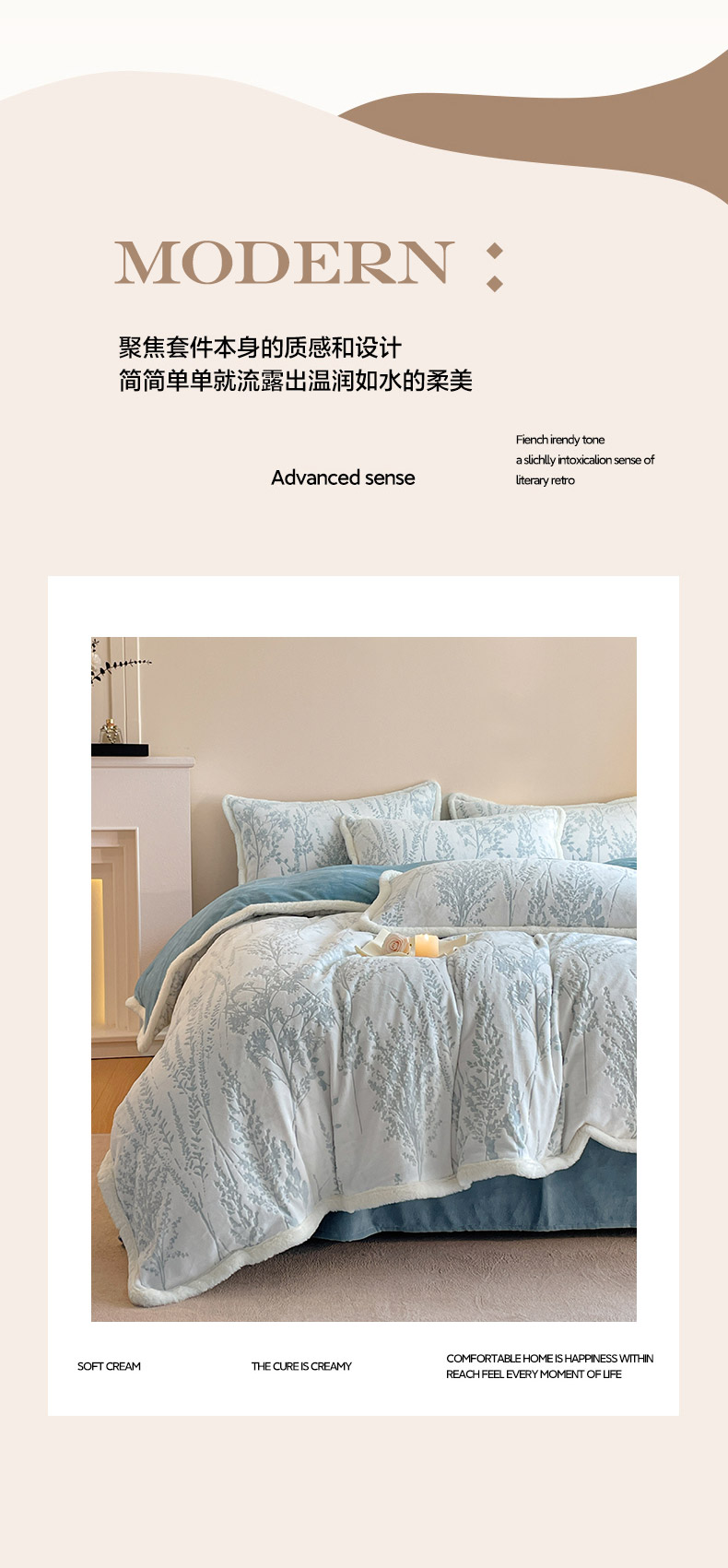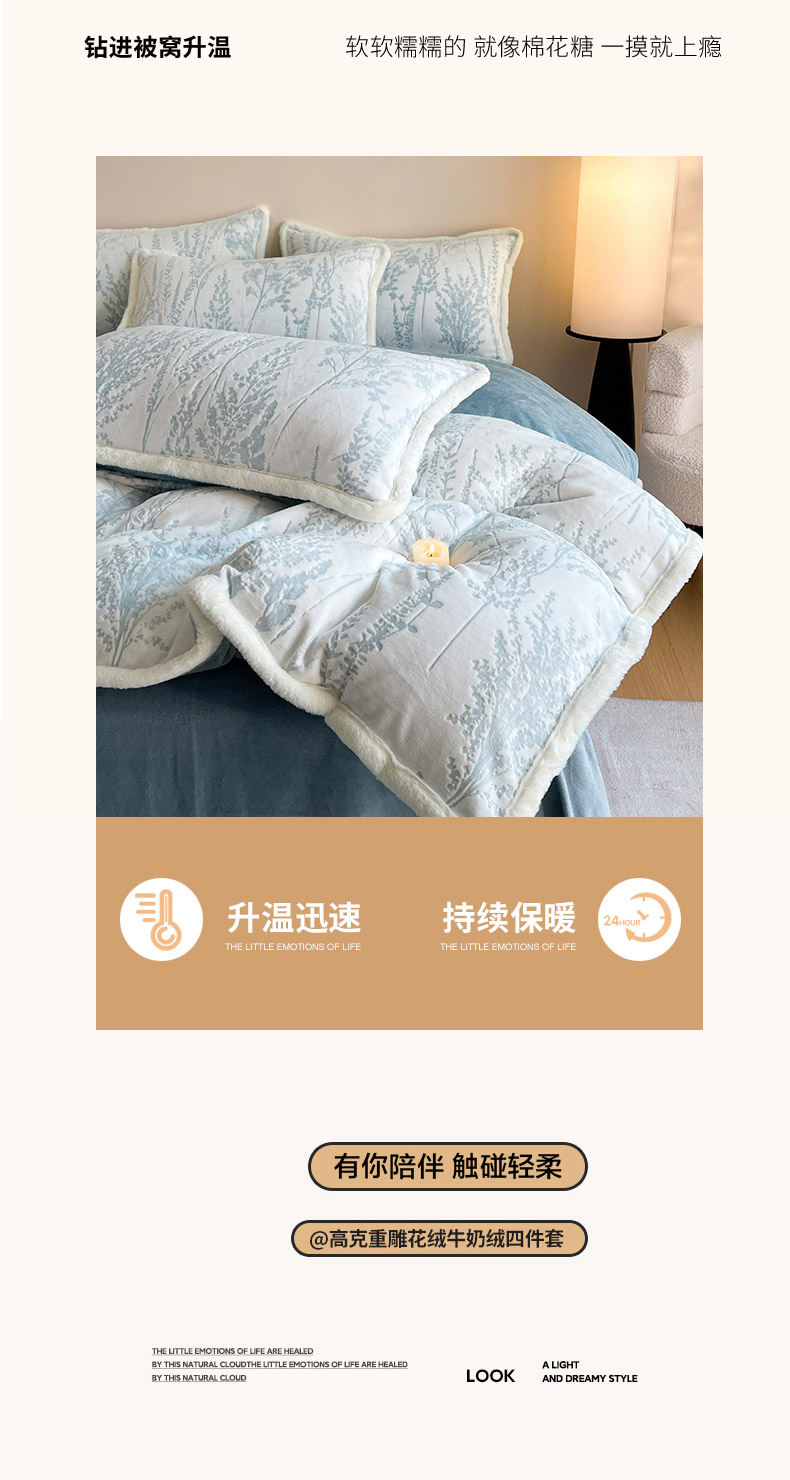 (总)吾诺 兔毛边230克雕花牛奶绒四件套 - 秋意系列,朝花,紫叶,花海,轻羽,飞花,秋意,冬梅,华美,春野