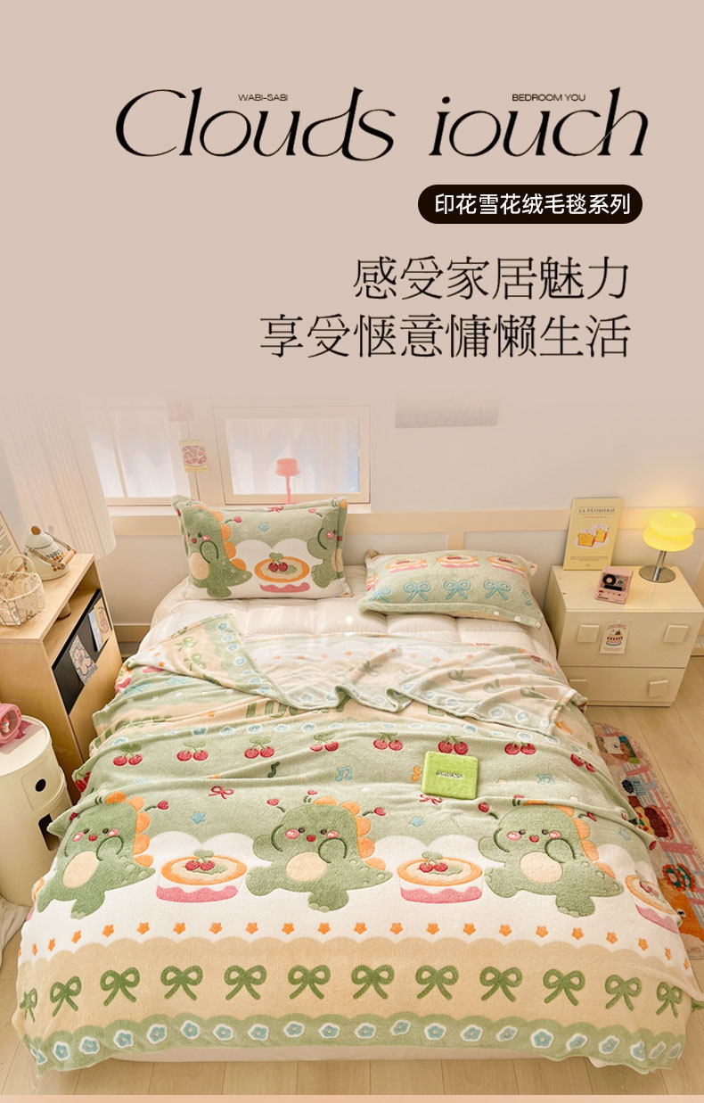 当前位置: 91家纺网 > 商品网购 > 毛毯休闲毯绒毯 > 毛毯 > 川悦生活 2025新款高克重双面雪花绒印花毛毯三件套 毛毯甜系龙龙