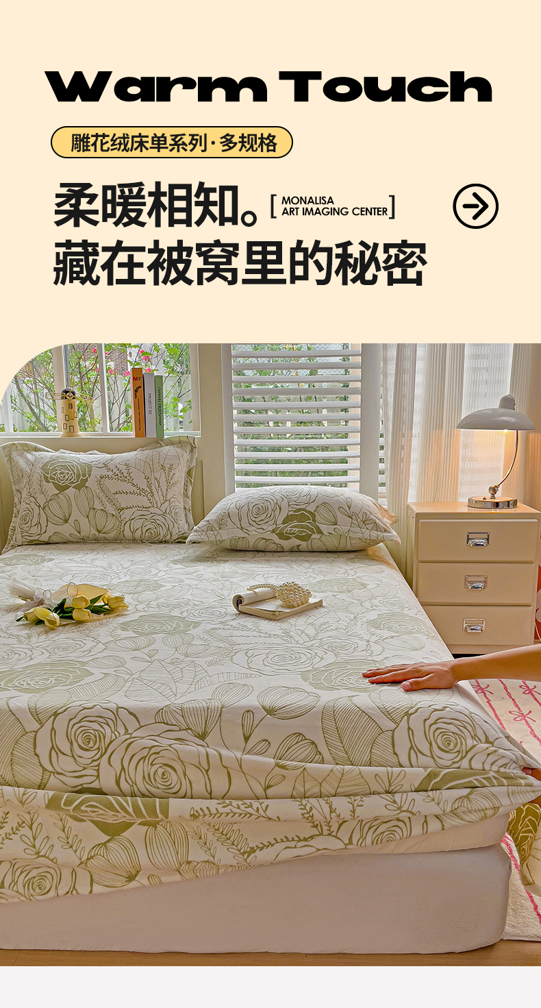当前位置: 91家纺网 > 商品网购 > 床上用品 > 床单 > 名兮-2025新款秋冬加厚立体高克重浮雕绒床单款 朵美-绿