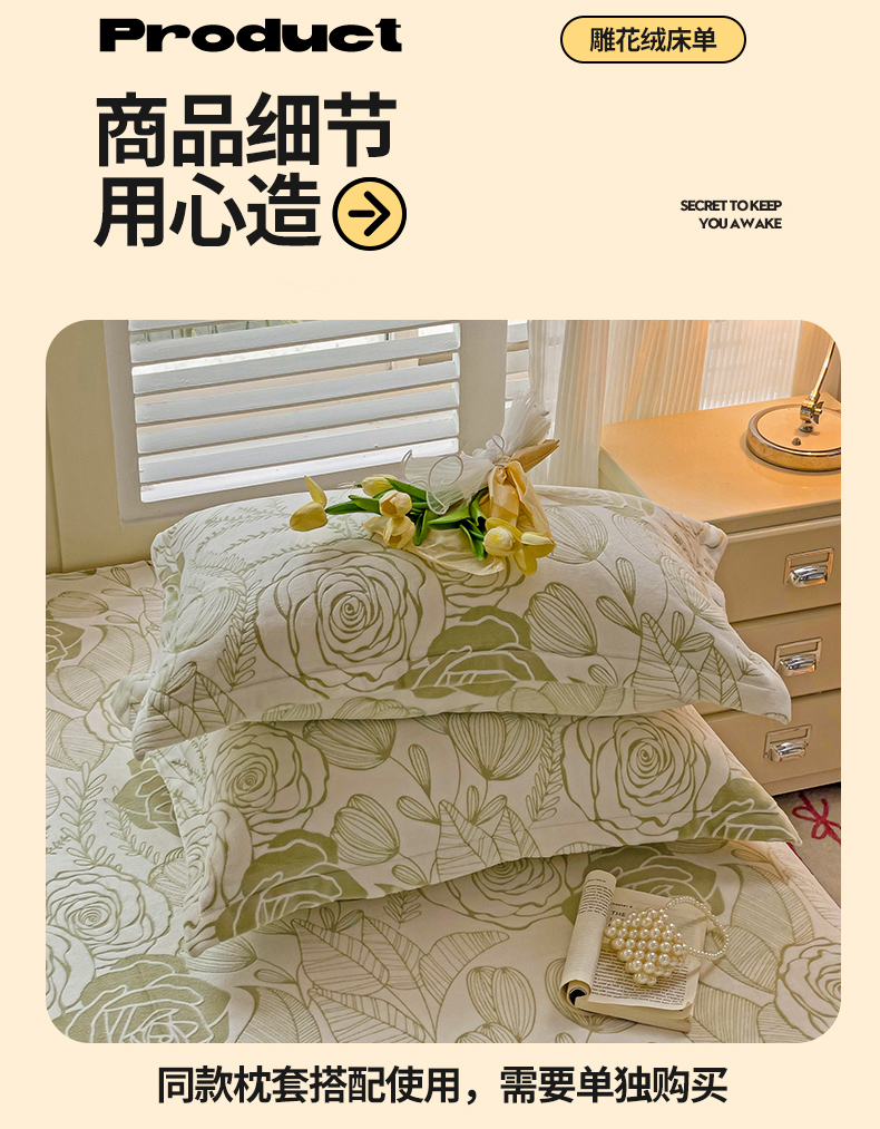 (总)名兮家居 2025新款高克重加厚雕花绒枕套,千叶-绿,朵美-粉,朵美-蓝,朵美-绿,千叶-粉,千叶-咖,羽毛-灰,羽毛-绿
