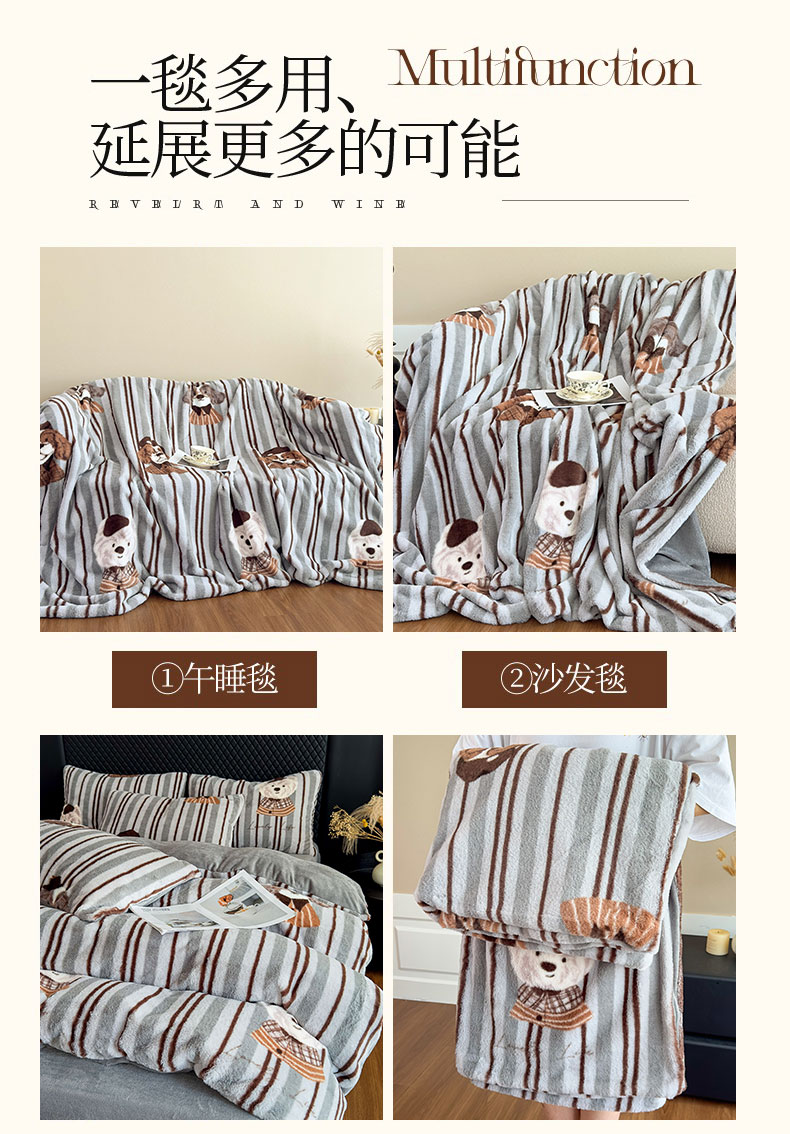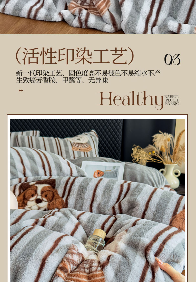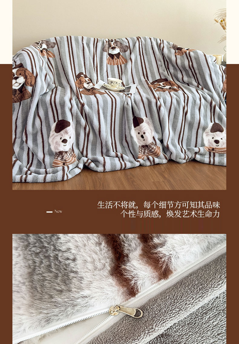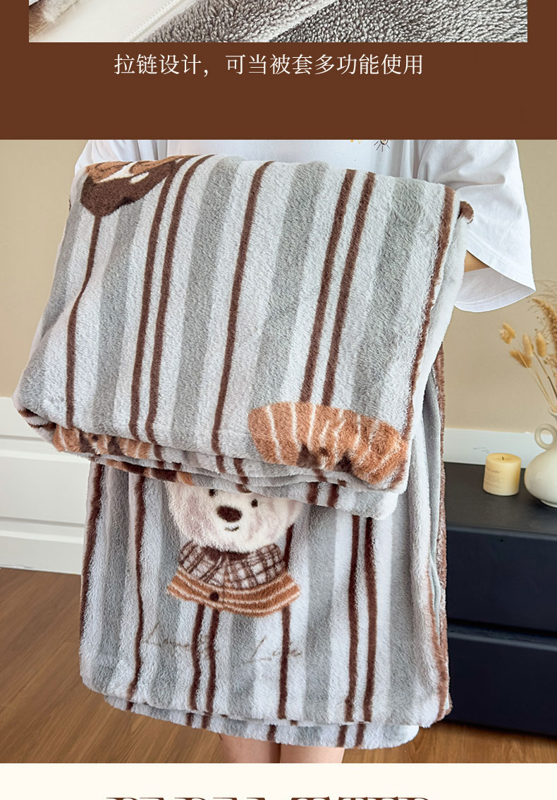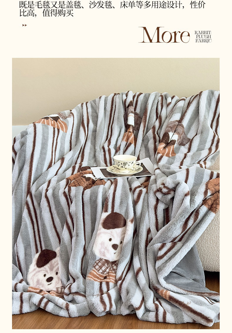 商品名称:璐维斯 2025新款A类兔毛绒双层多功能被套毯带拉链 卡通花卉牛奶绒毛毯秋冬保暖毯子盖毯 时尚条纹狗