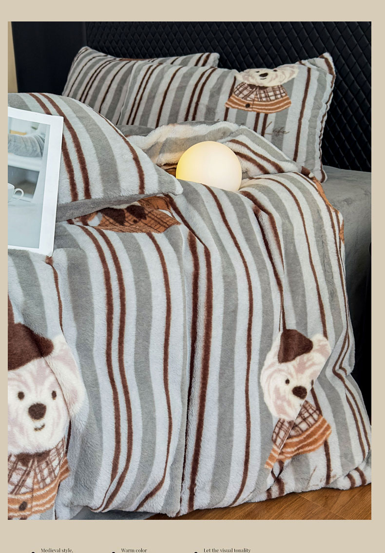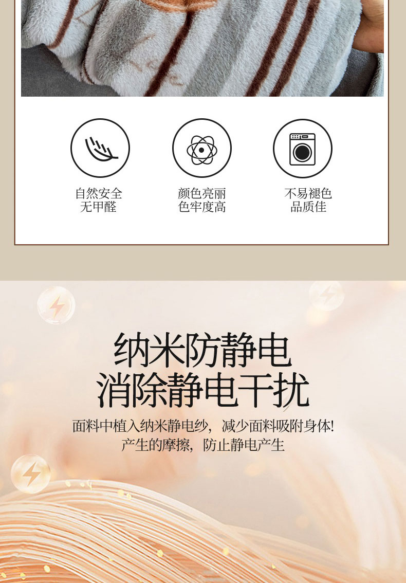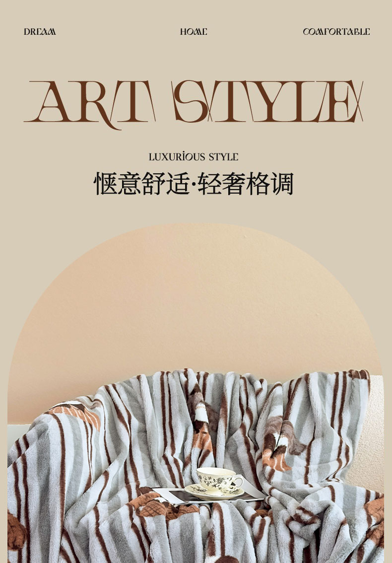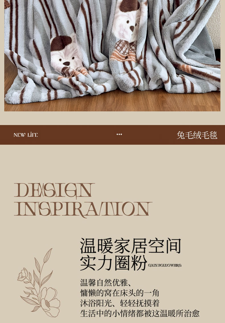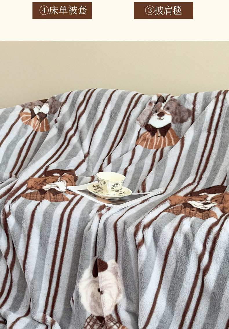 商品名称:璐维斯 2025新款A类兔毛绒双层多功能被套毯带拉链 卡通花卉牛奶绒毛毯秋冬保暖毯子盖毯 时尚条纹狗