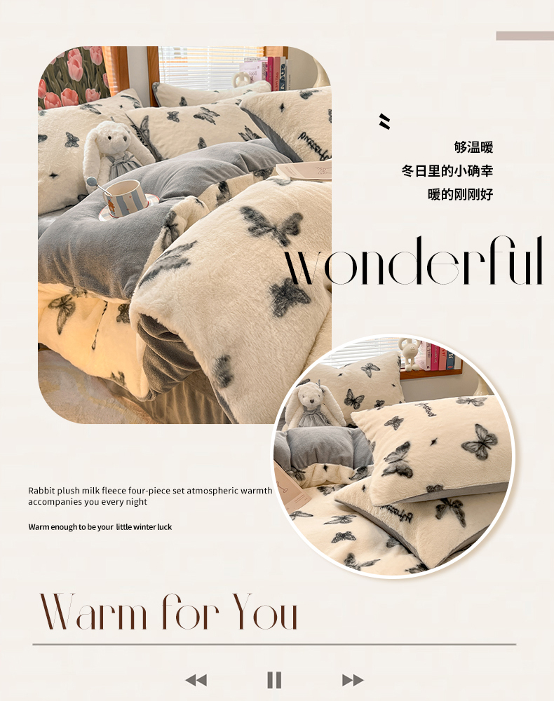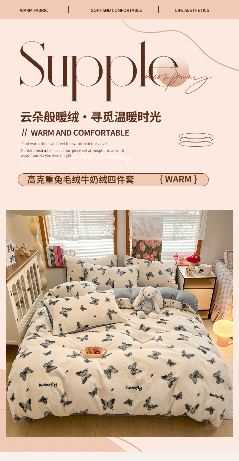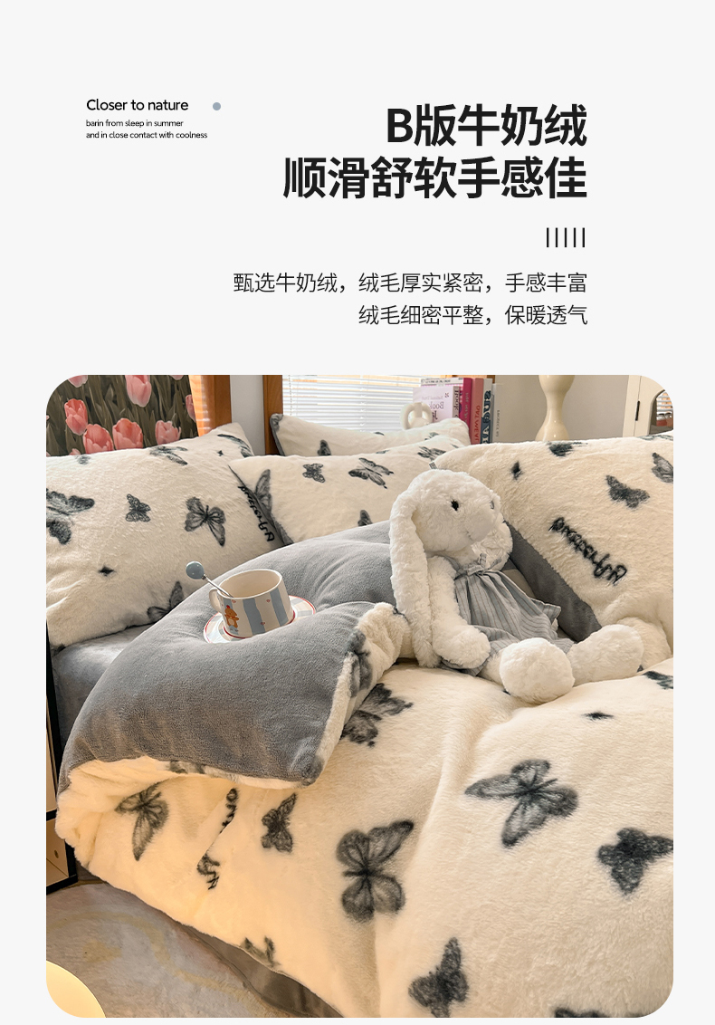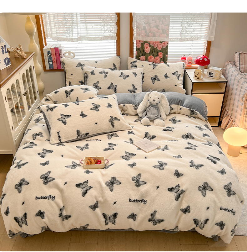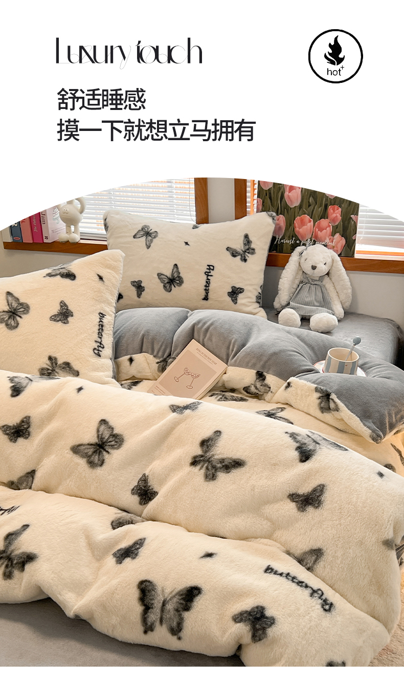 当前位置: 91家纺网 > 商品网购 > 床品套件 > 四件套 > 其它四件套 > 妖妖家纺 2025新款加厚印花兔毛绒保暖四件套 幻蝶