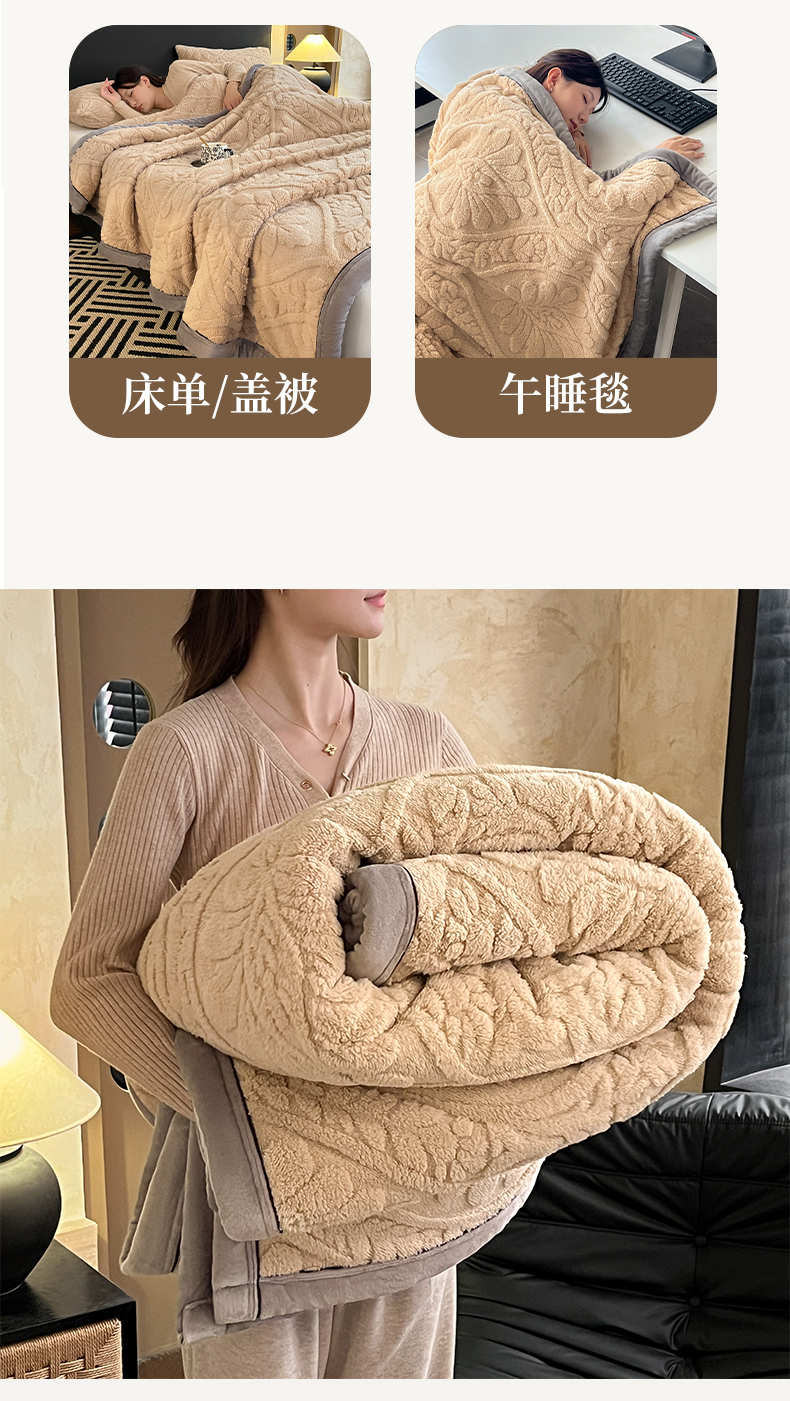 (总)欧邦 2025新款提花暖阳绒羊羔绒毛毯多功能盖毯-梦境系列,梦境-粉玉,梦境-幻白,梦境-米驼,梦境-桑绿,梦境-雾灰