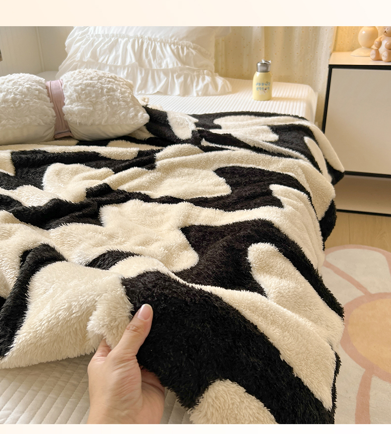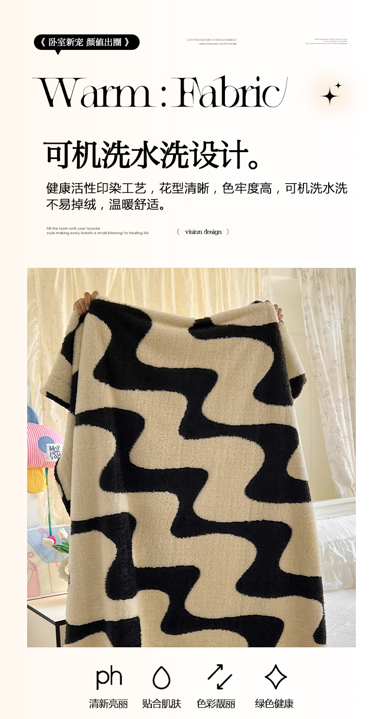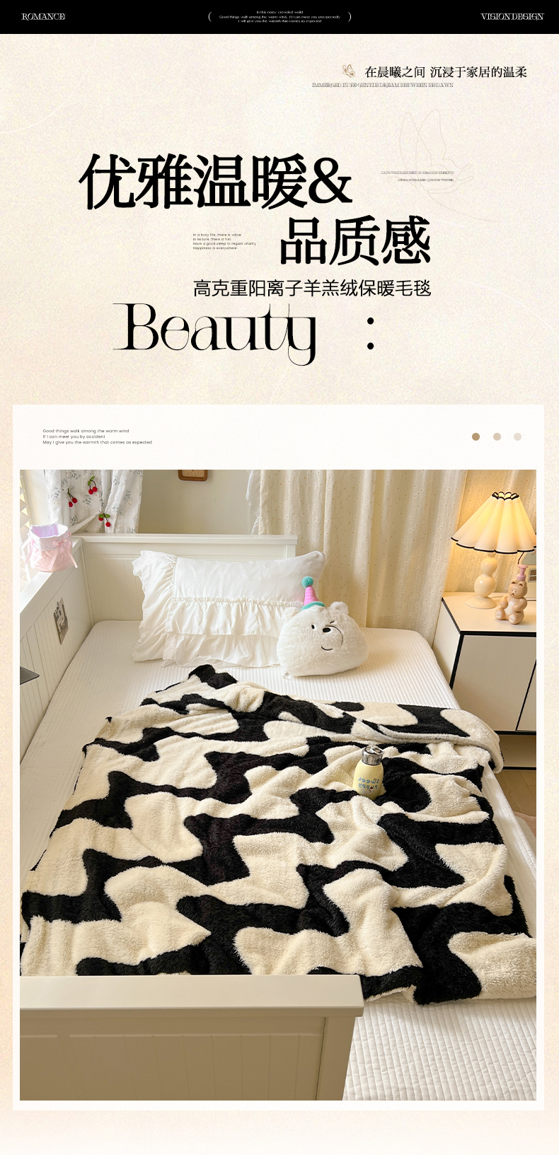 妖妖家纺 2025新款高克重阳离子羊羔绒保暖双面毛毯 漾花拾波