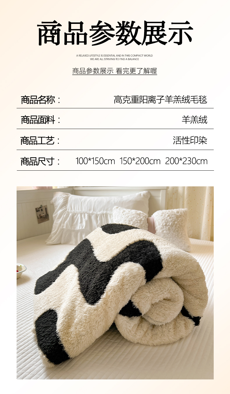 商品名称:妖妖家纺 2025新款高克重阳离子羊羔绒保暖双面毛毯 漾花拾波