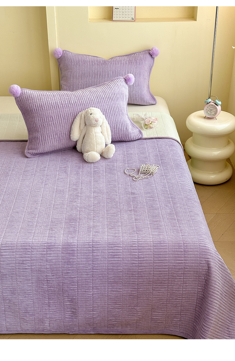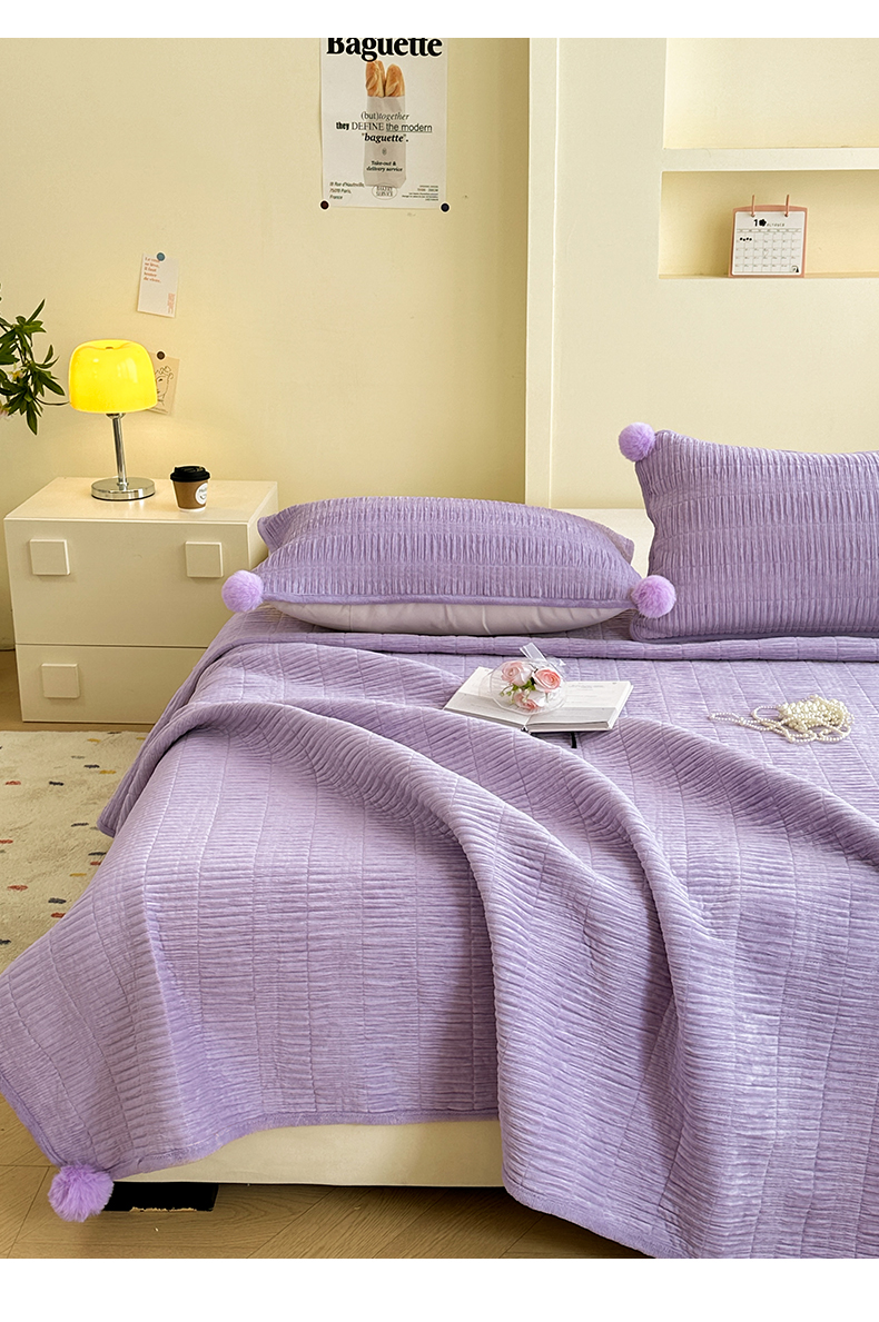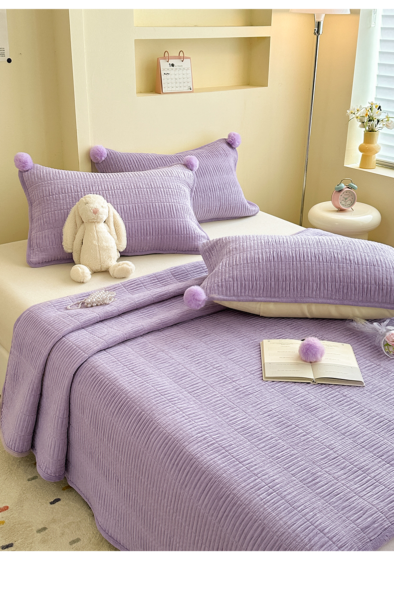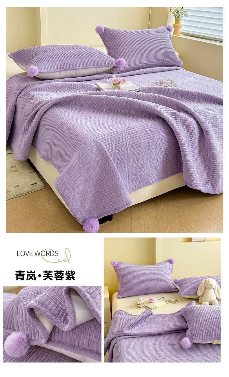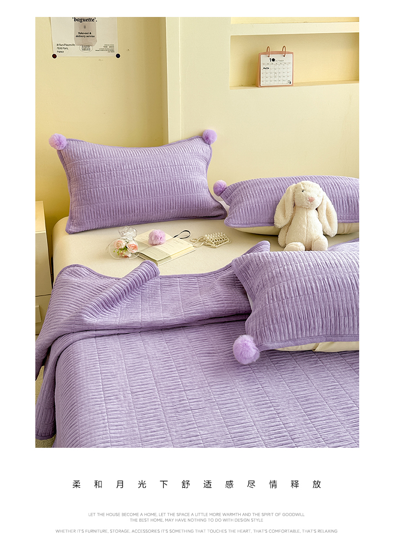 寐居家纺 2025新款婴儿皱皱绒纯色床盖三件套 青岚-芙蓉紫