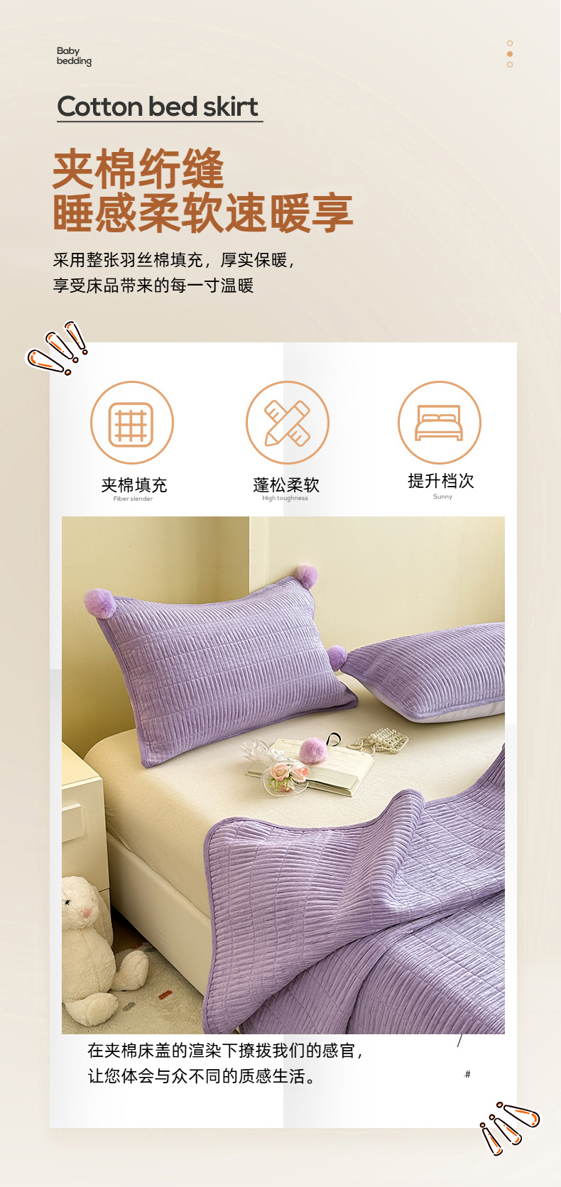 商品名称:寐居家纺 2025新款婴儿皱皱绒纯色床盖三件套 青岚-芙蓉紫