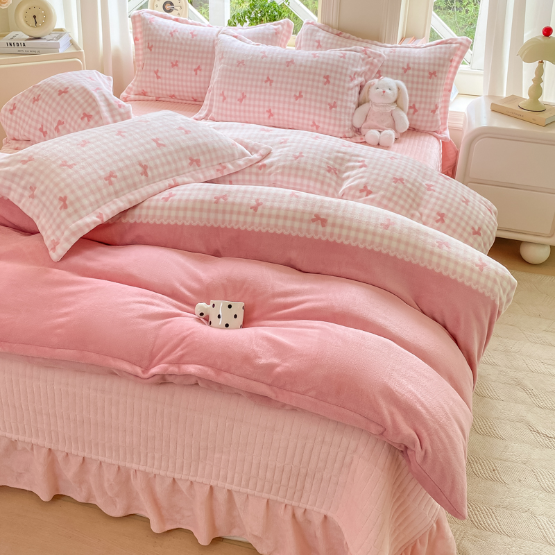 梦可莱家居 2025冬新款牛奶绒加厚保暖花边床盖四件套系列简单款 梦情