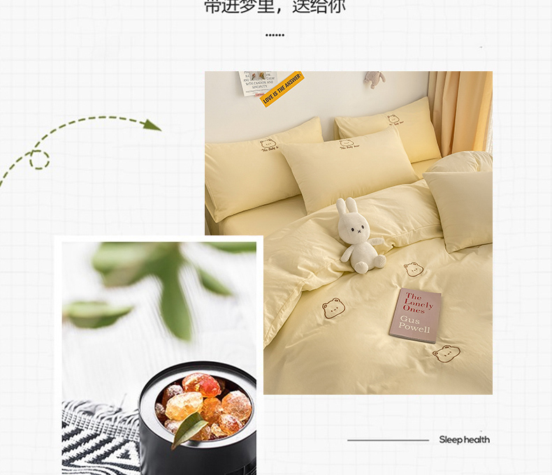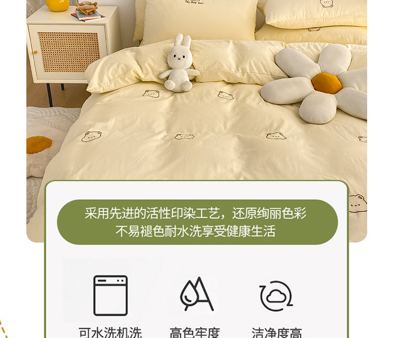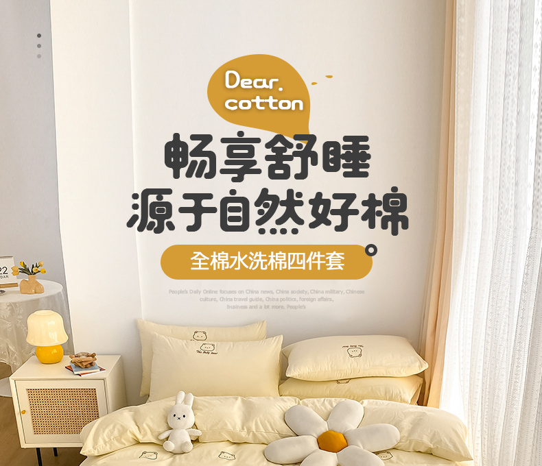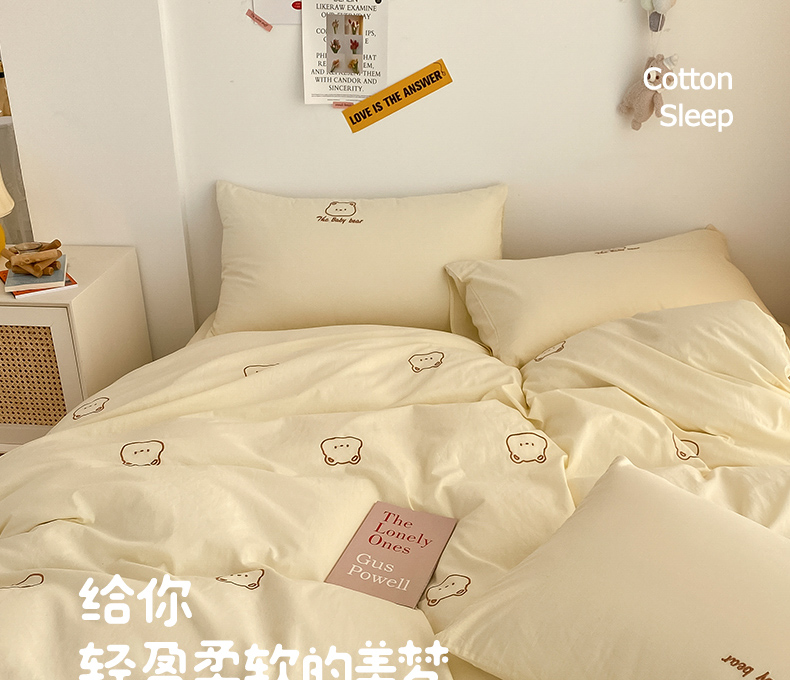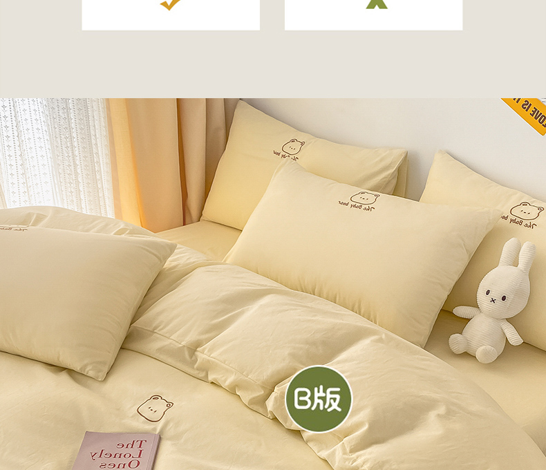 当前位置: 91家纺网 > 商品网购 > 床品套件 > 四件套 > 全棉普通四件套 > 琪格格纺织 2025新款40s全棉纯棉小熊绣花系列四件套 嘟嘟熊 奶油黄