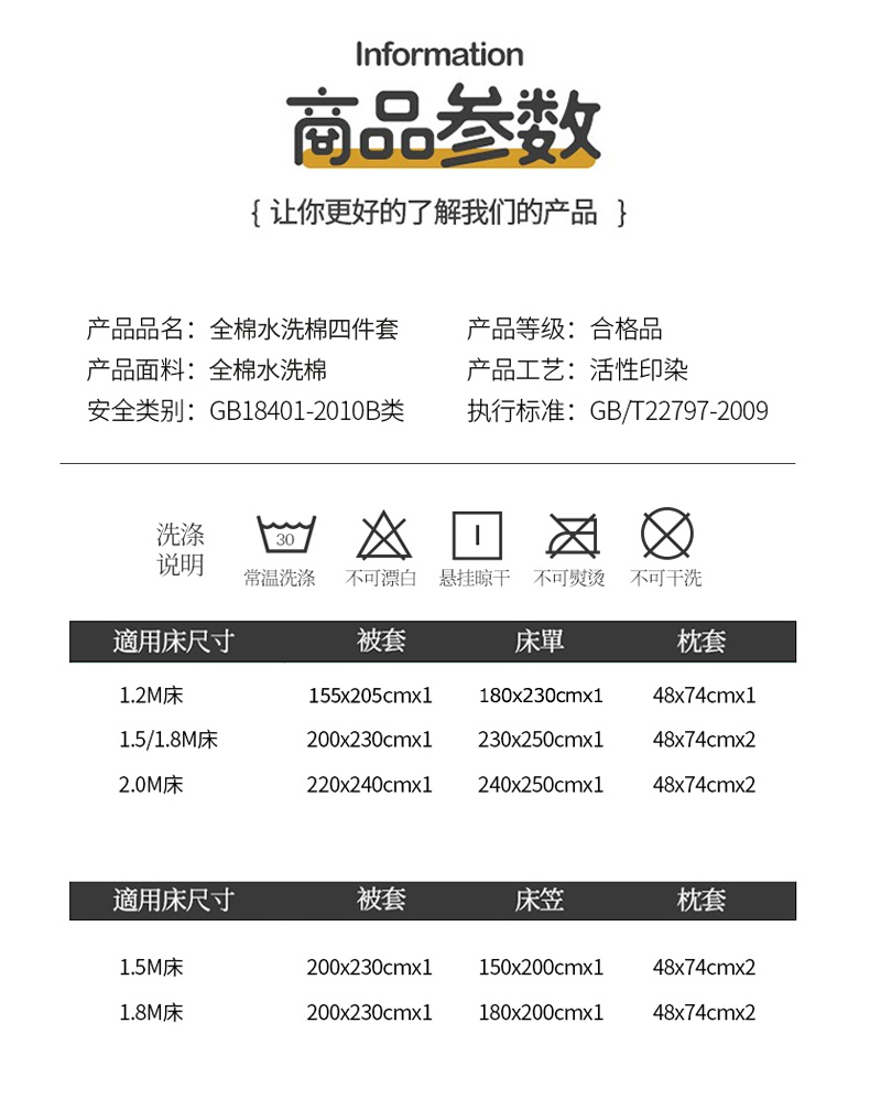 【床笠款】1.5四件套-被套200x230 | ¥135.00 |