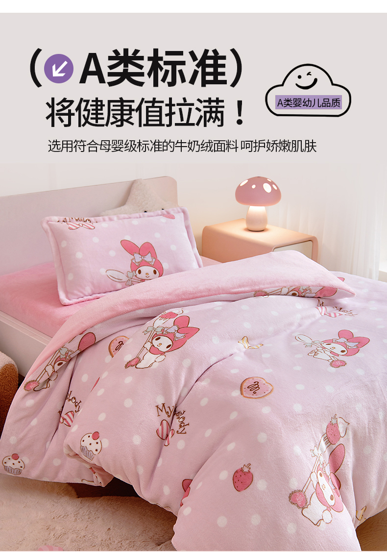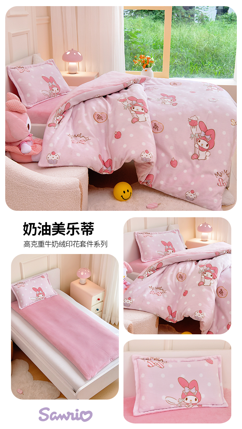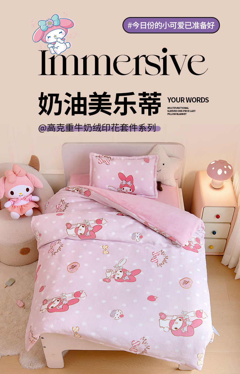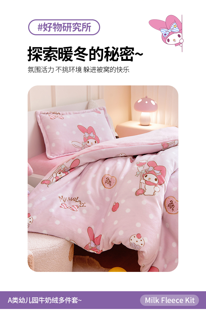 当前位置: 91家纺网 > 商品网购 > 床品套件 > 多件套 > 多件套 > 吉咪兔家纺 2024新品正版三丽鸥库洛米美乐蒂牛奶绒幼儿园被子三件套保暖被褥六件套 奶油美乐蒂
