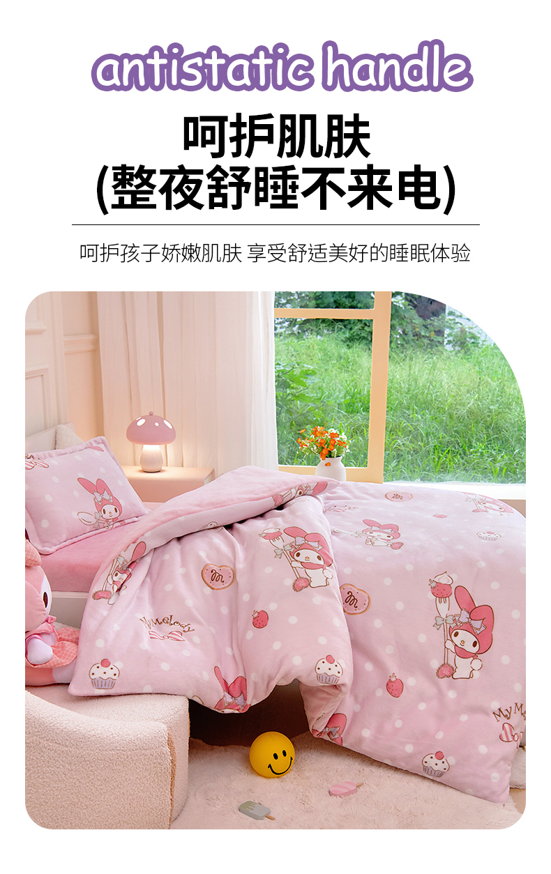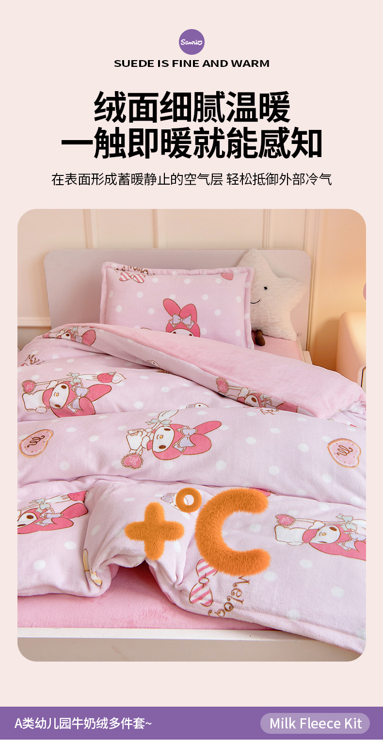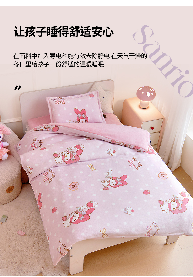 当前位置: 91家纺网 > 商品网购 > 床品套件 > 多件套 > 多件套 > 吉咪兔家纺 2024新品正版三丽鸥库洛米美乐蒂牛奶绒幼儿园被子三件套保暖被褥六件套 奶油美乐蒂