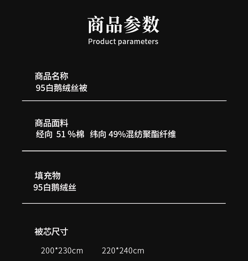 • 被子种类: 羽绒被
