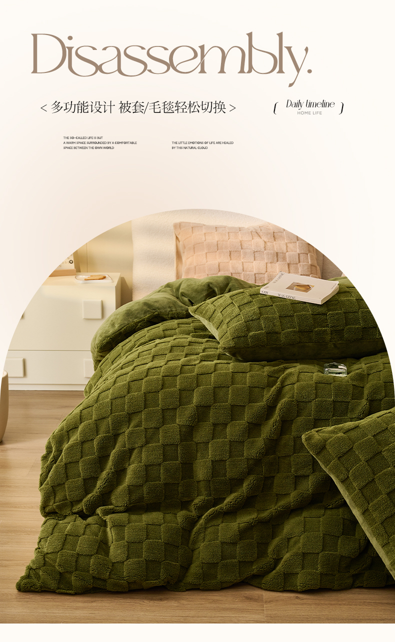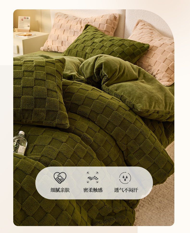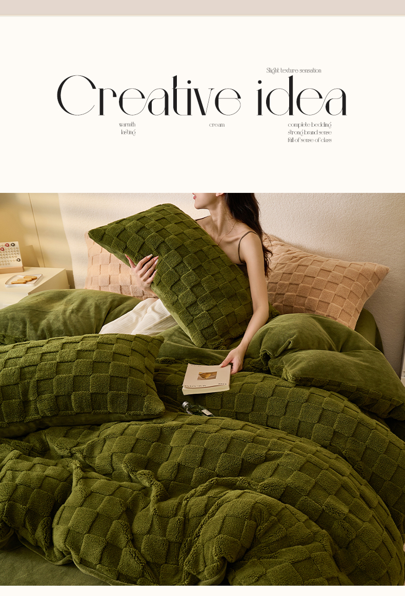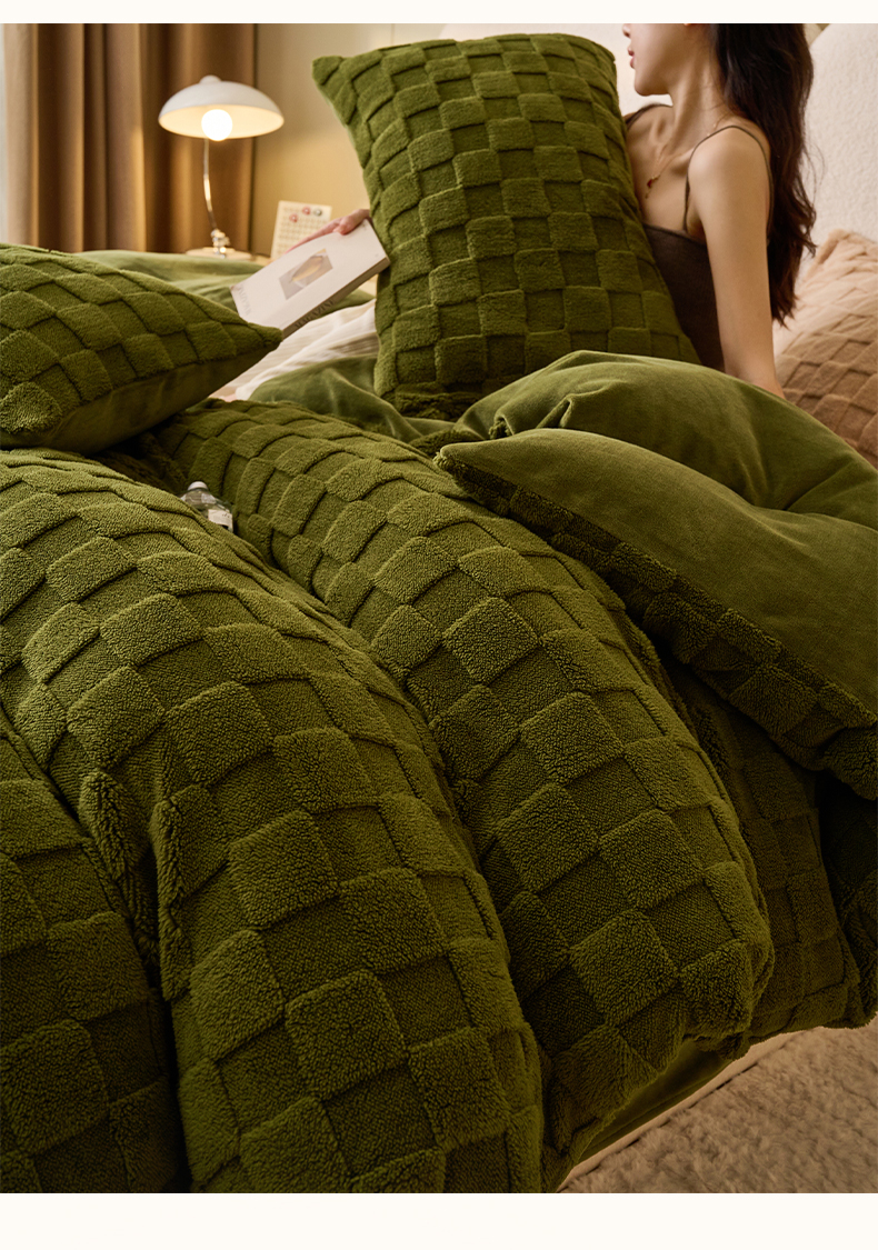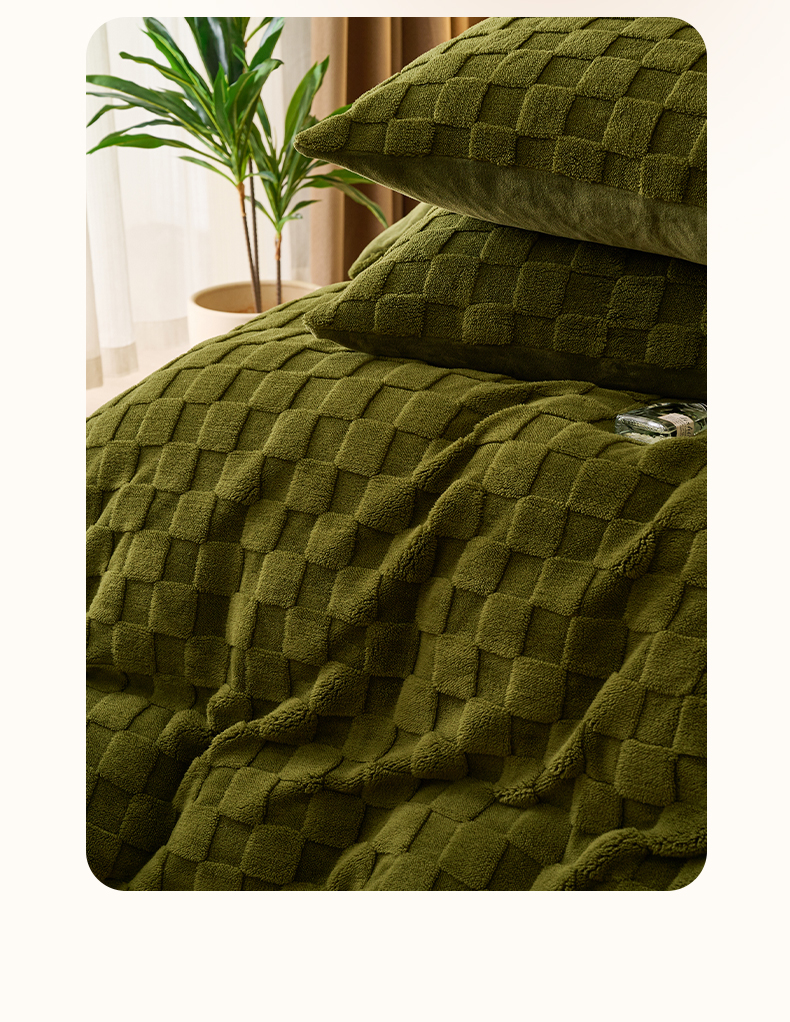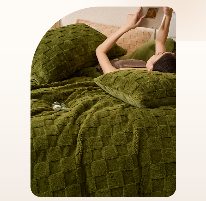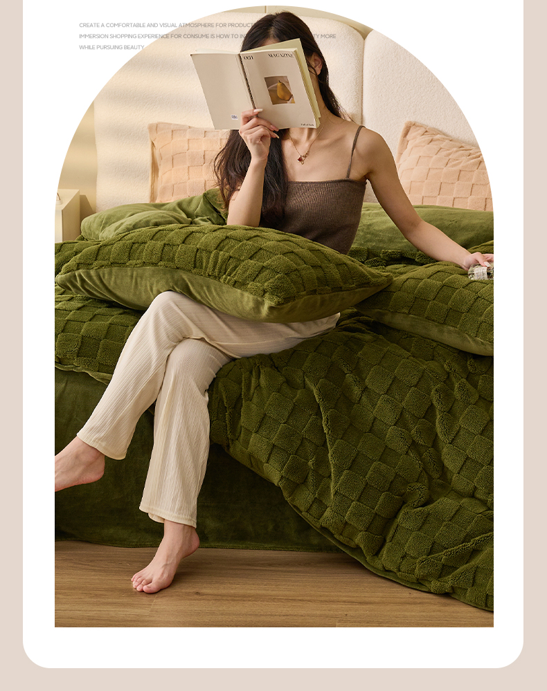 • 91家纺网 家纺一手货源 找家纺 晨曦家纺 2025新款加厚高克重230克塔芙绒牛奶绒单被套-初暖系列 初暖-茶绿