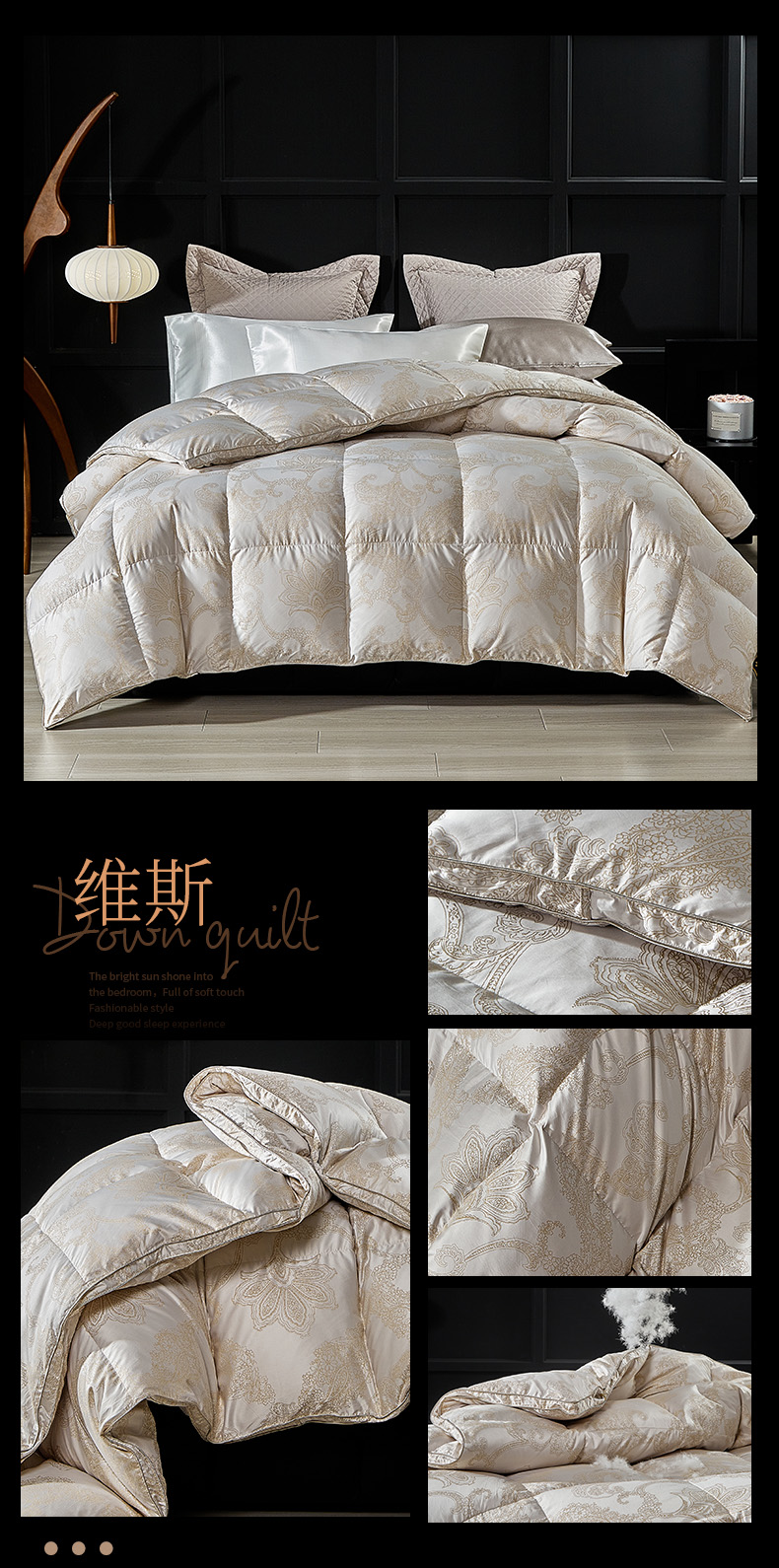 • 91家纺网 家纺一手货源 找家纺 (总)暖羽屋羽绒馆 2025新款白鹅绒丝被芯  羽绒丝被 羽毛被子 婚庆羽绒被 双人加厚冬被,恒运莱 金-角度一,恒运莱 金-角度二