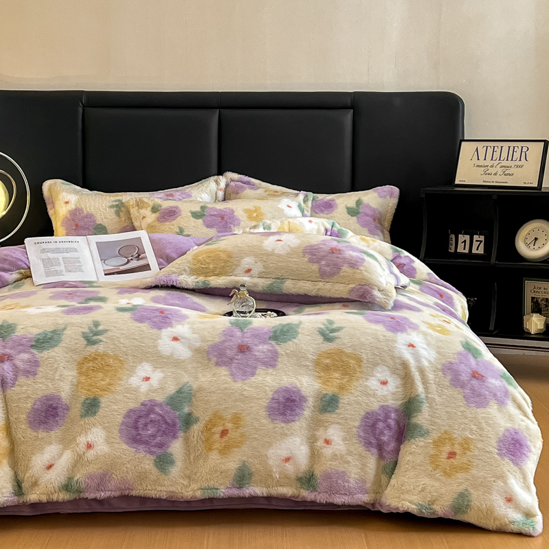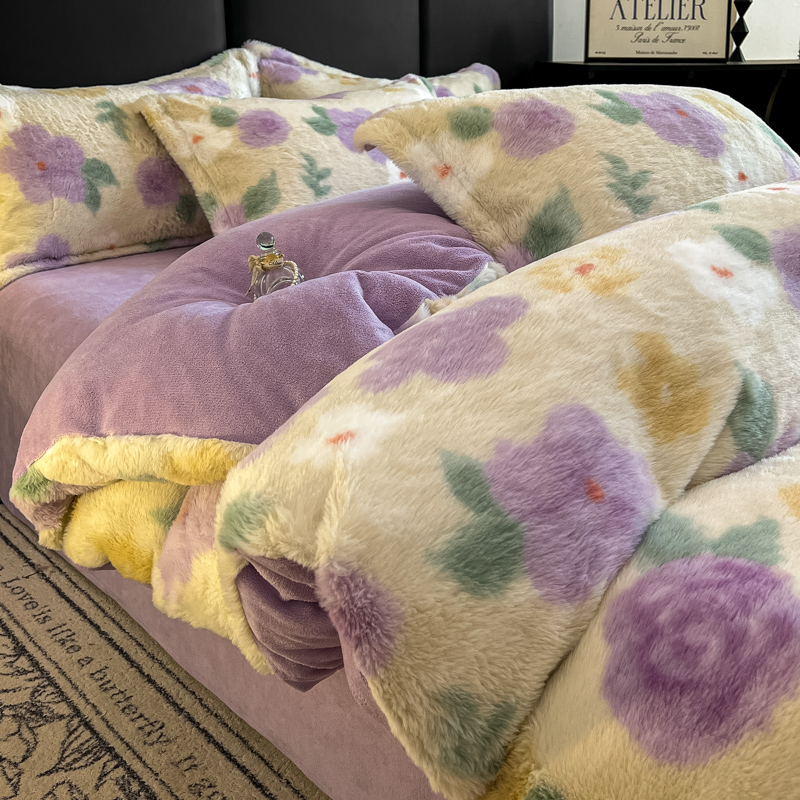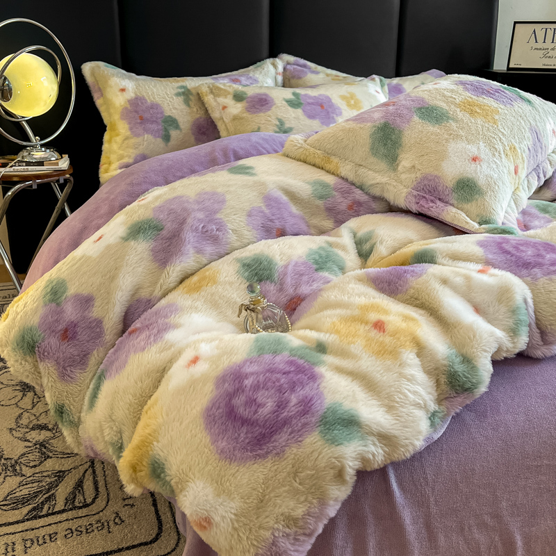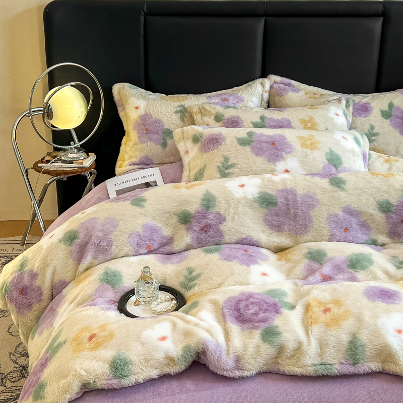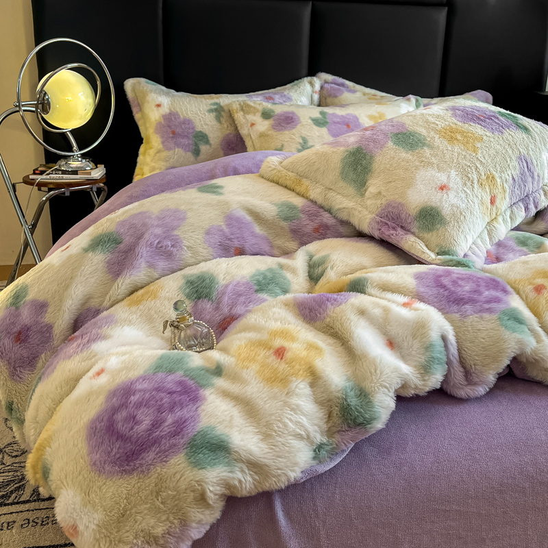 商品名称:一比一家纺 2025新款亲肤舒适兔毛绒兔兔绒牛奶绒四件套 紫色花语