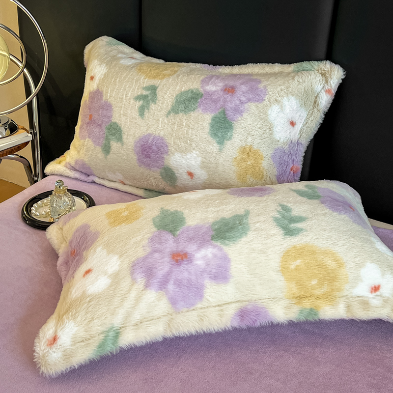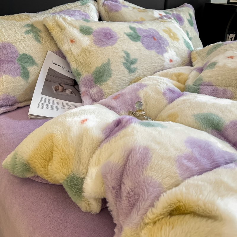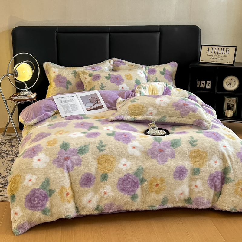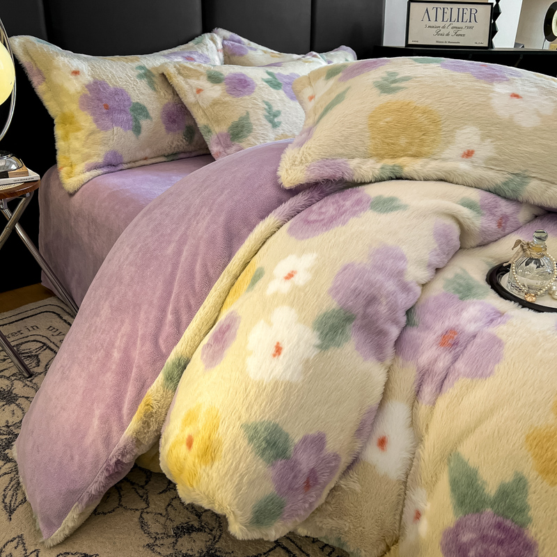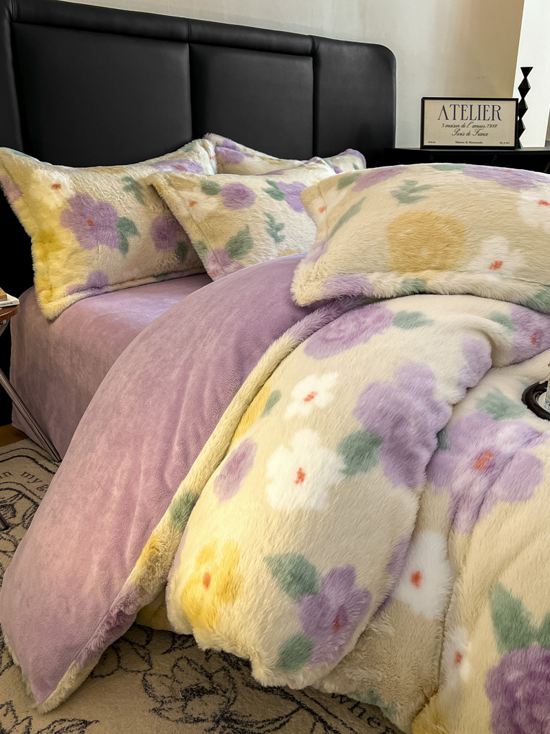 商品名称:一比一家纺 2025新款亲肤舒适兔毛绒兔兔绒牛奶绒四件套 紫色花语