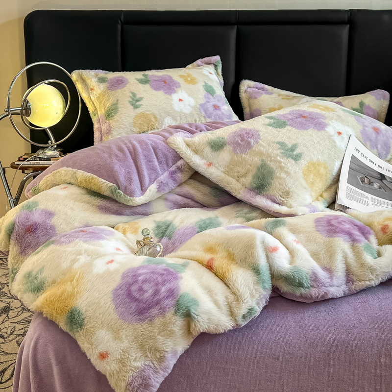 一比一家纺 2025新款亲肤舒适兔毛绒兔兔绒牛奶绒四件套 紫色花语
