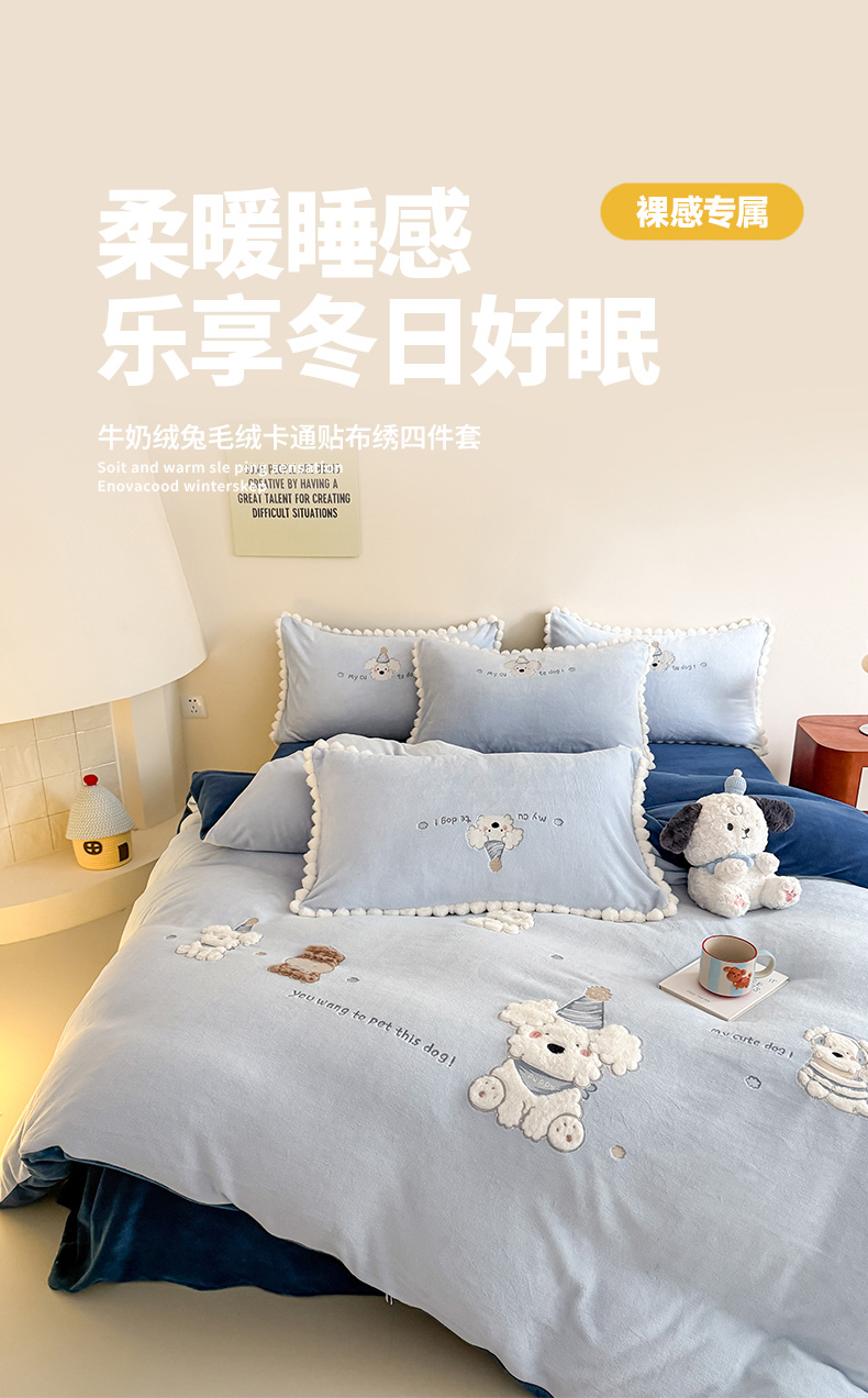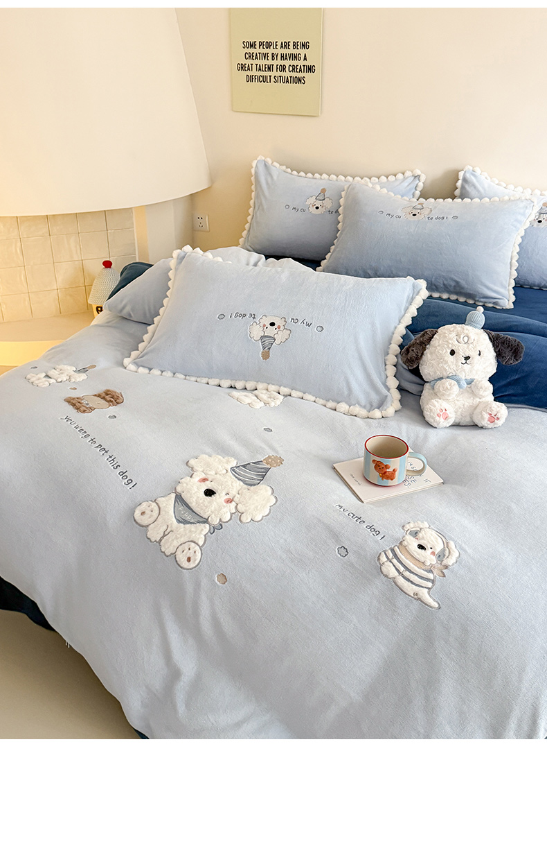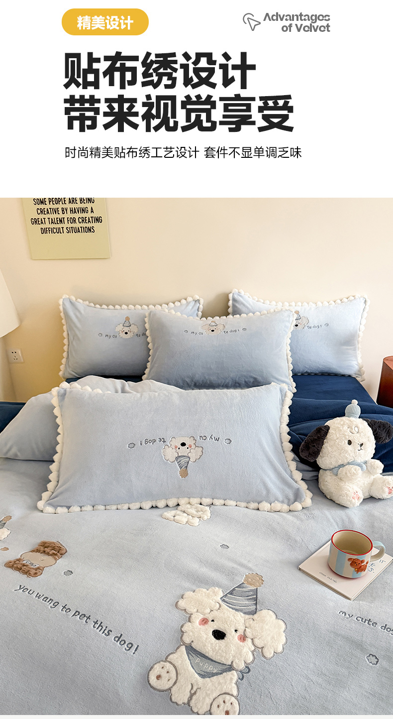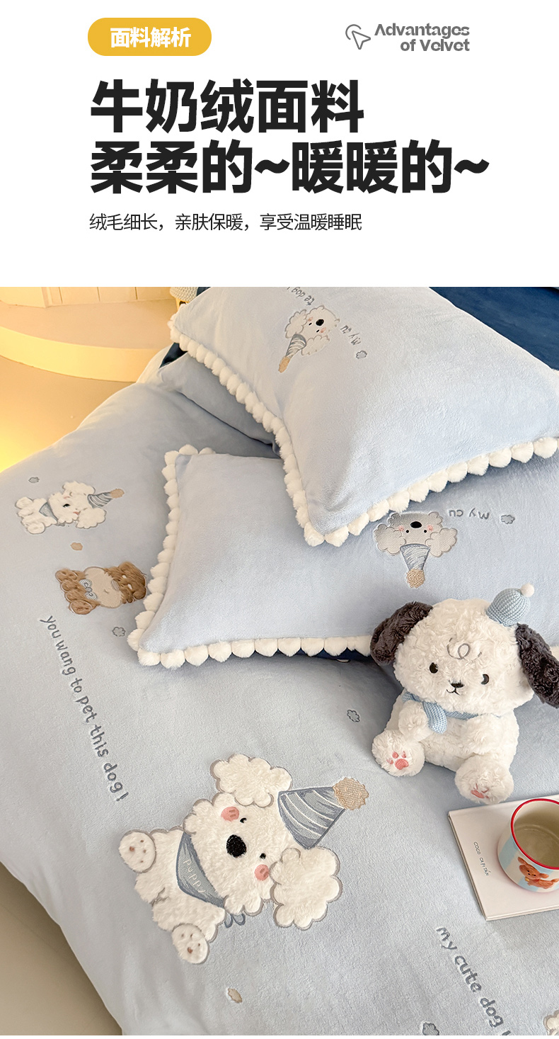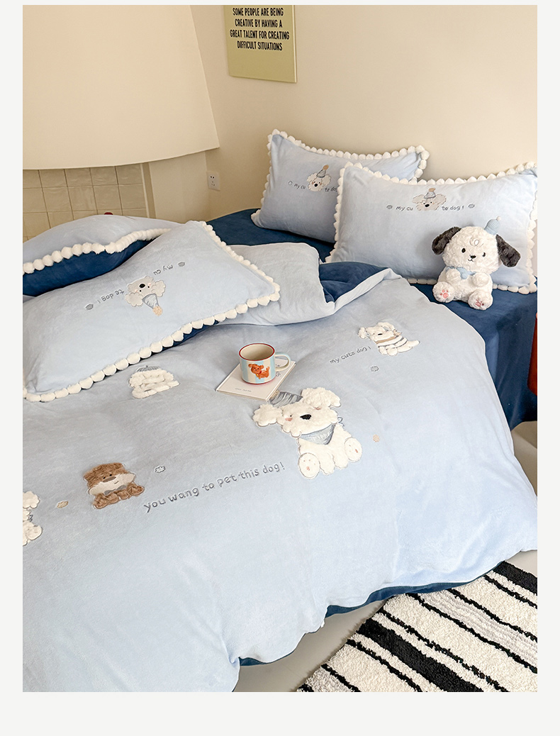 当前位置: 91家纺网 > 商品网购 > 床品套件 > 四件套 > 牛奶绒四件套 > 蜜柚 2025新款秋冬高克重全消光牛奶绒小清新卡通贴布四件套 泡芙狗狗-蓝