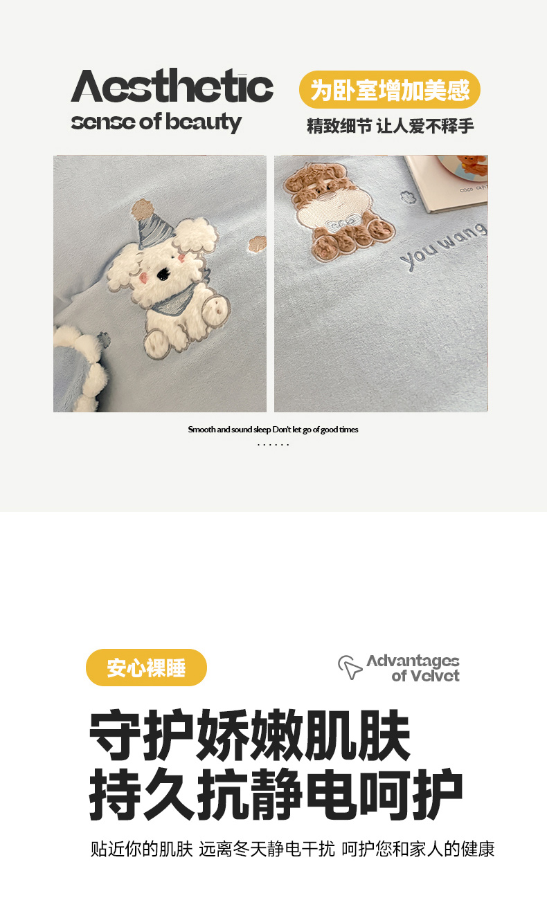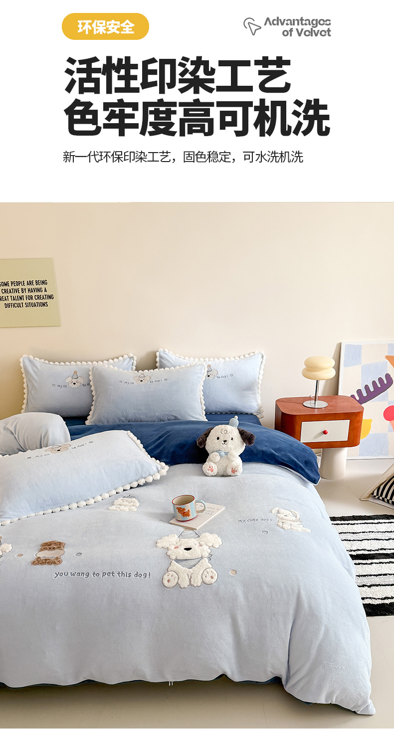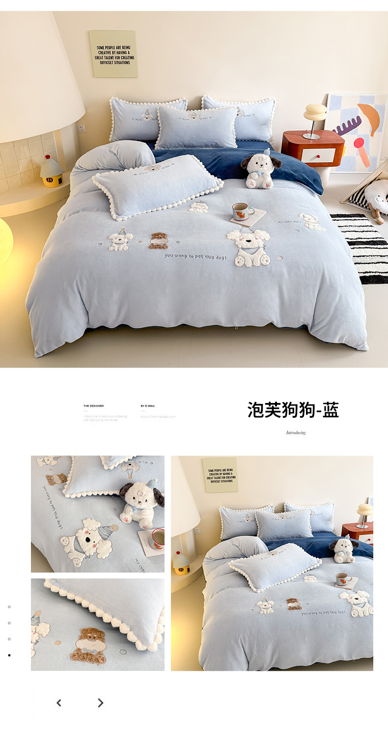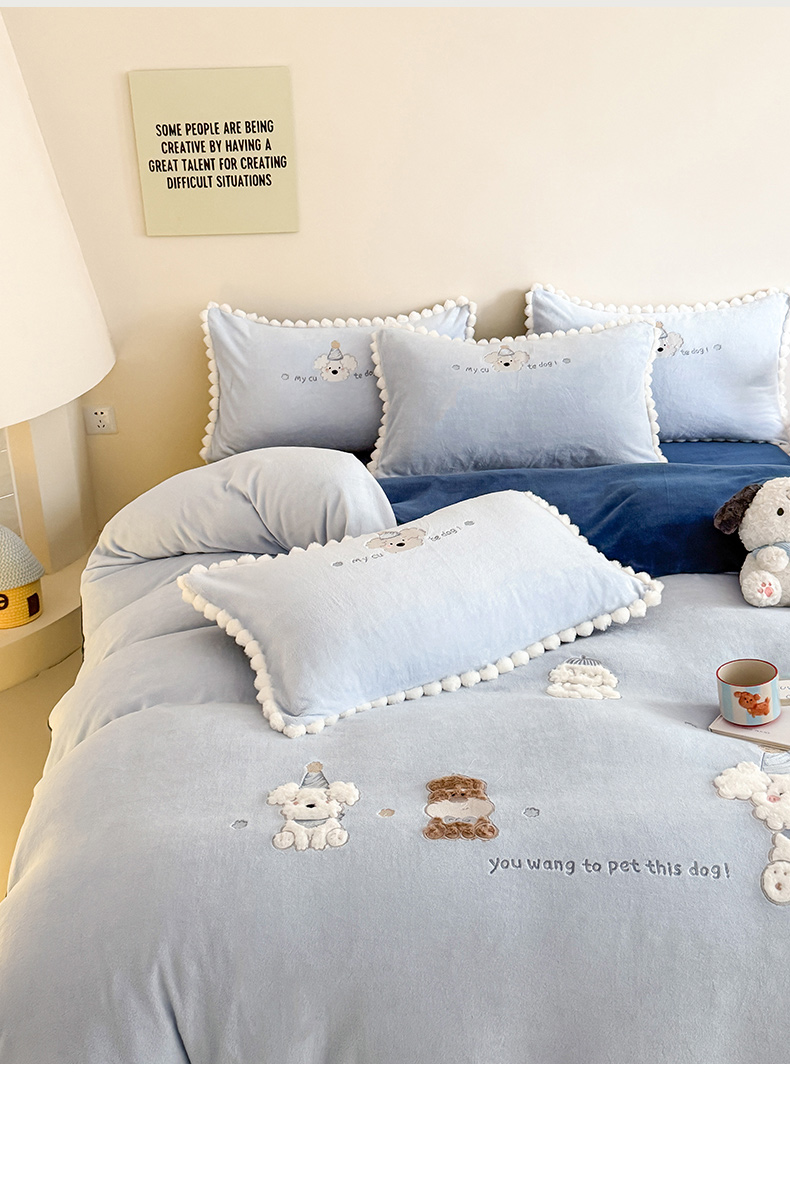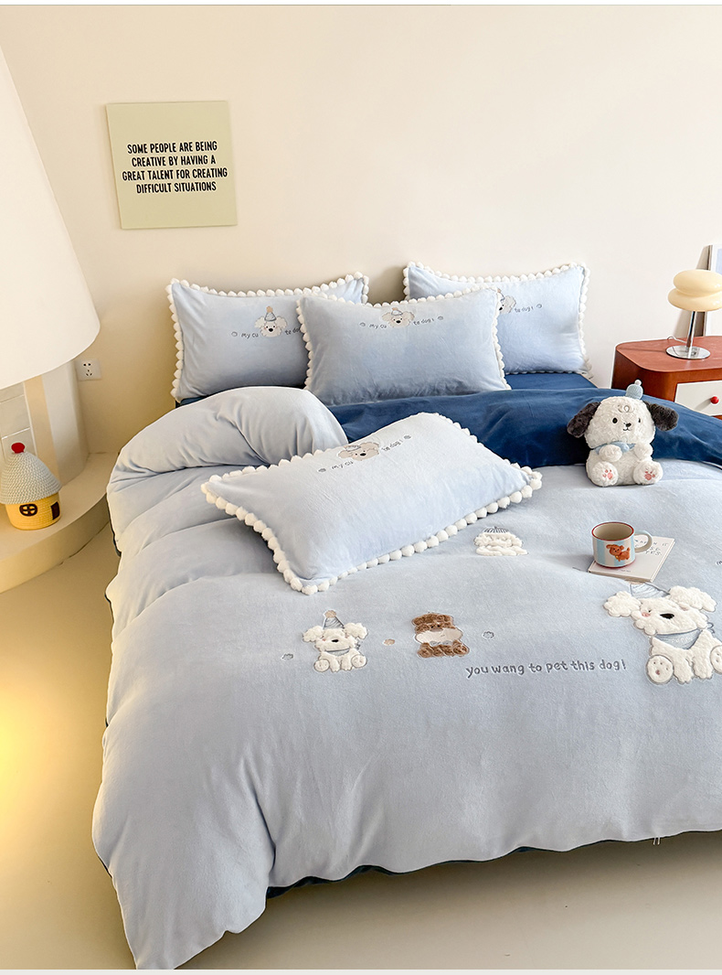 当前位置: 91家纺网 > 商品网购 > 床品套件 > 四件套 > 牛奶绒四件套 > 蜜柚 2025新款秋冬高克重全消光牛奶绒小清新卡通贴布四件套 泡芙狗狗-蓝