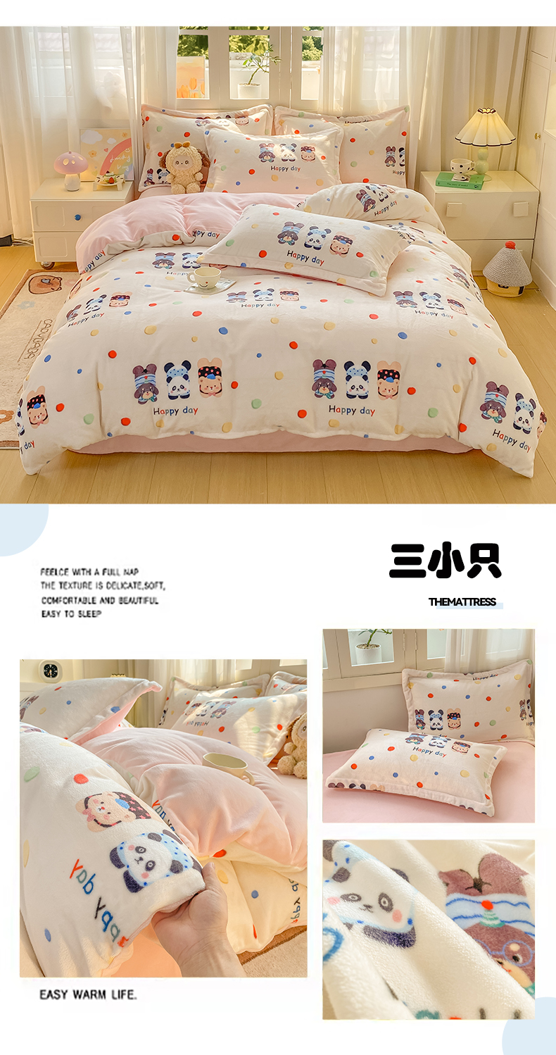 红日子纺织品 2025新款高克重牛奶绒印花四件套 缤纷乐园