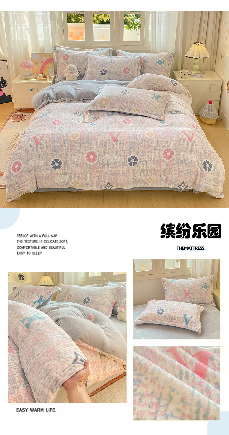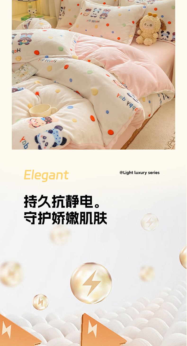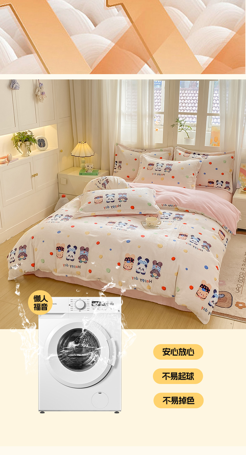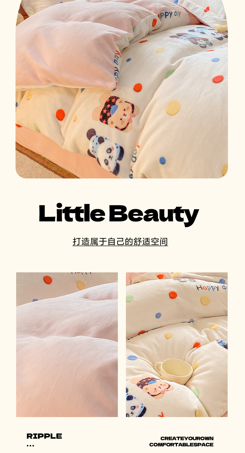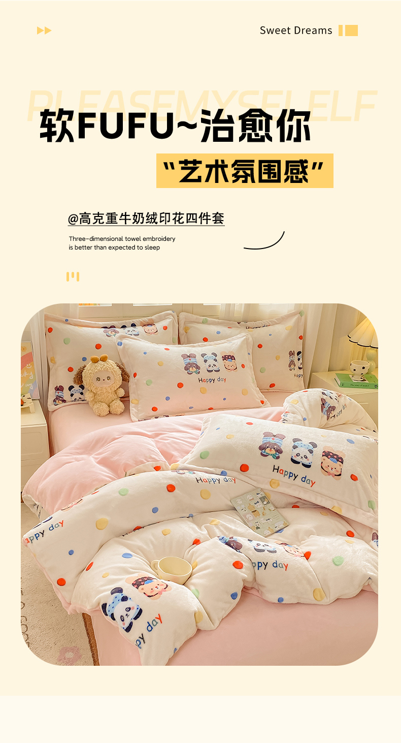 红日子纺织品 2025新款高克重牛奶绒印花四件套 三小只