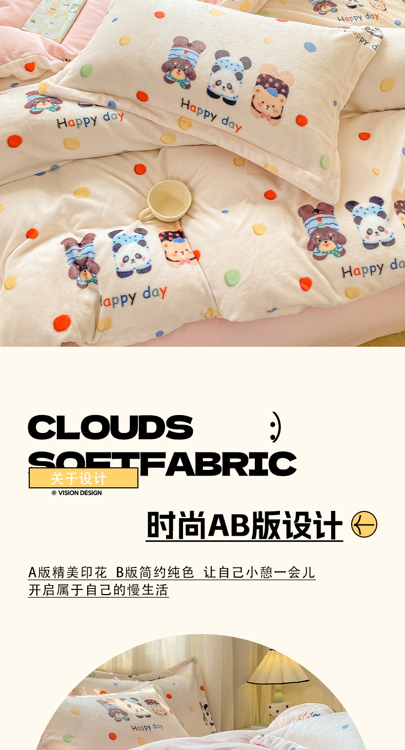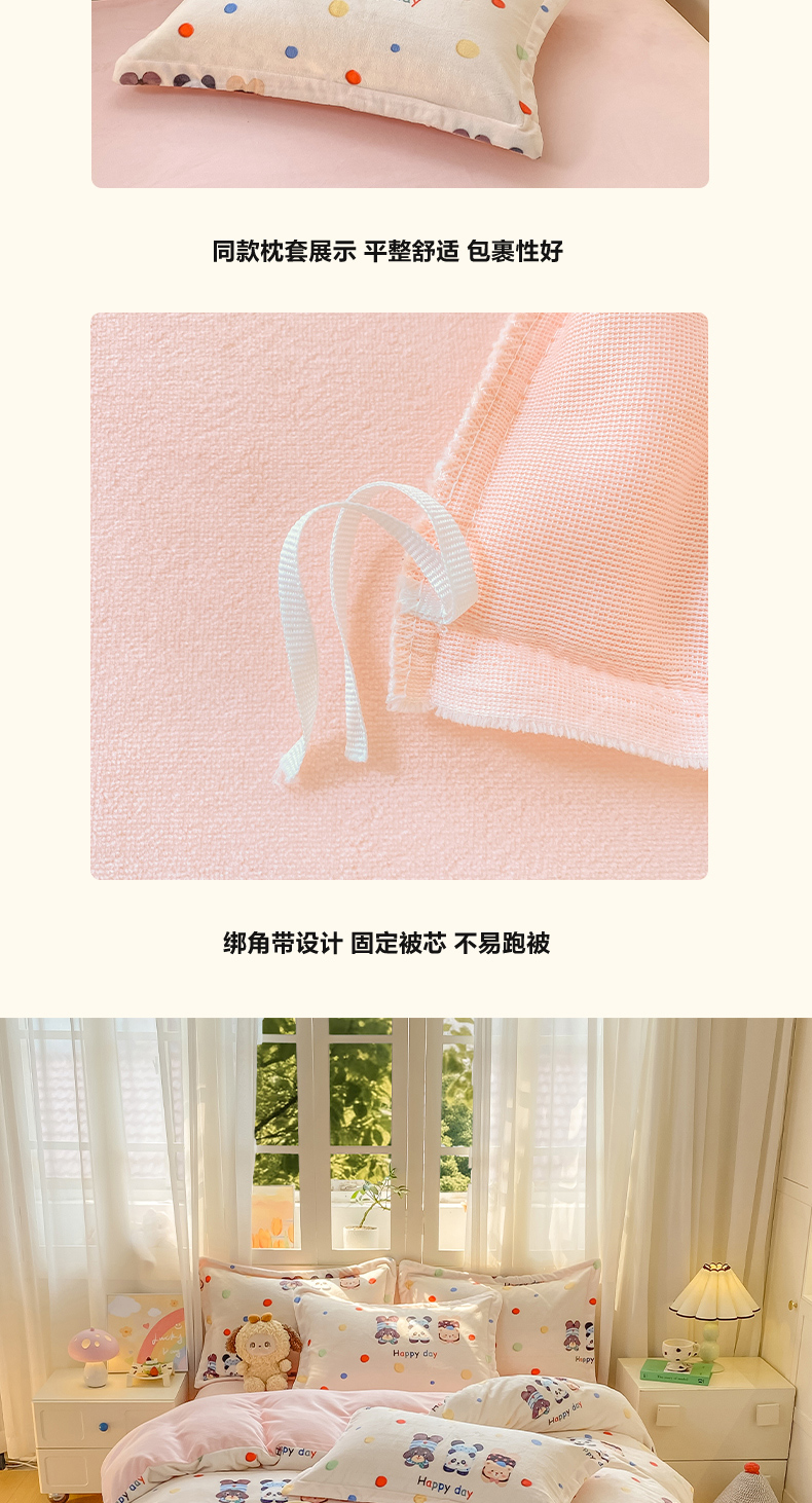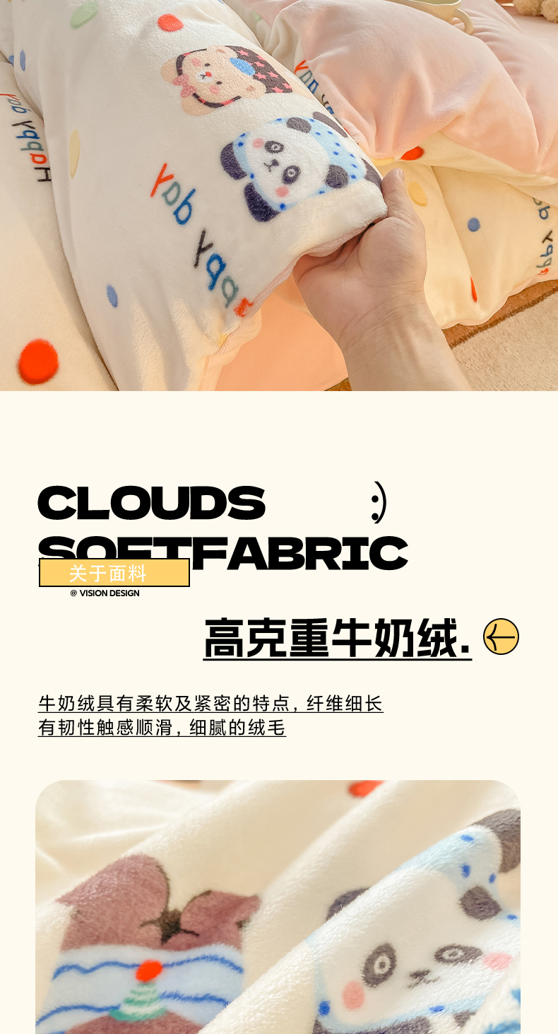 商品名称:红日子纺织品 2025新款高克重牛奶绒印花四件套 三小只