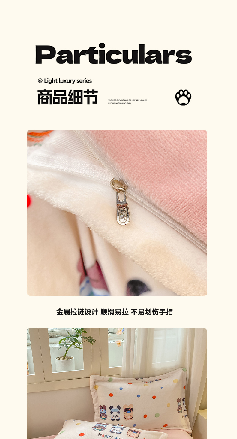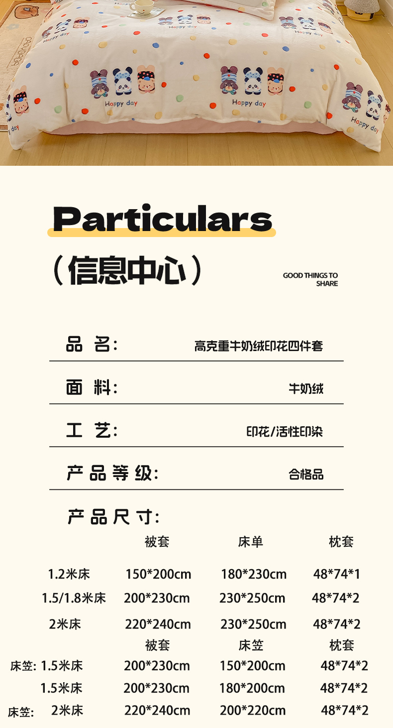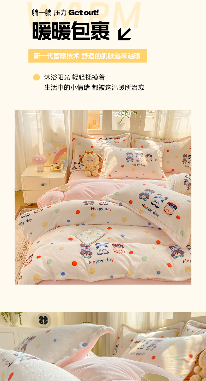 商品名称:红日子纺织品 2025新款高克重牛奶绒印花四件套 三小只