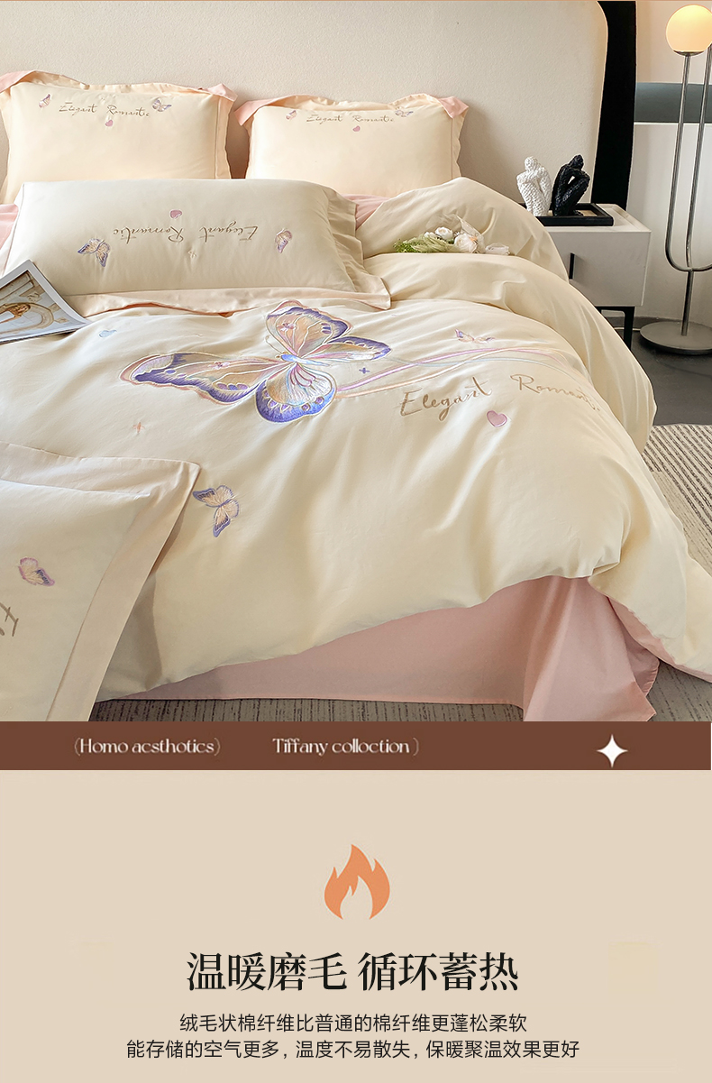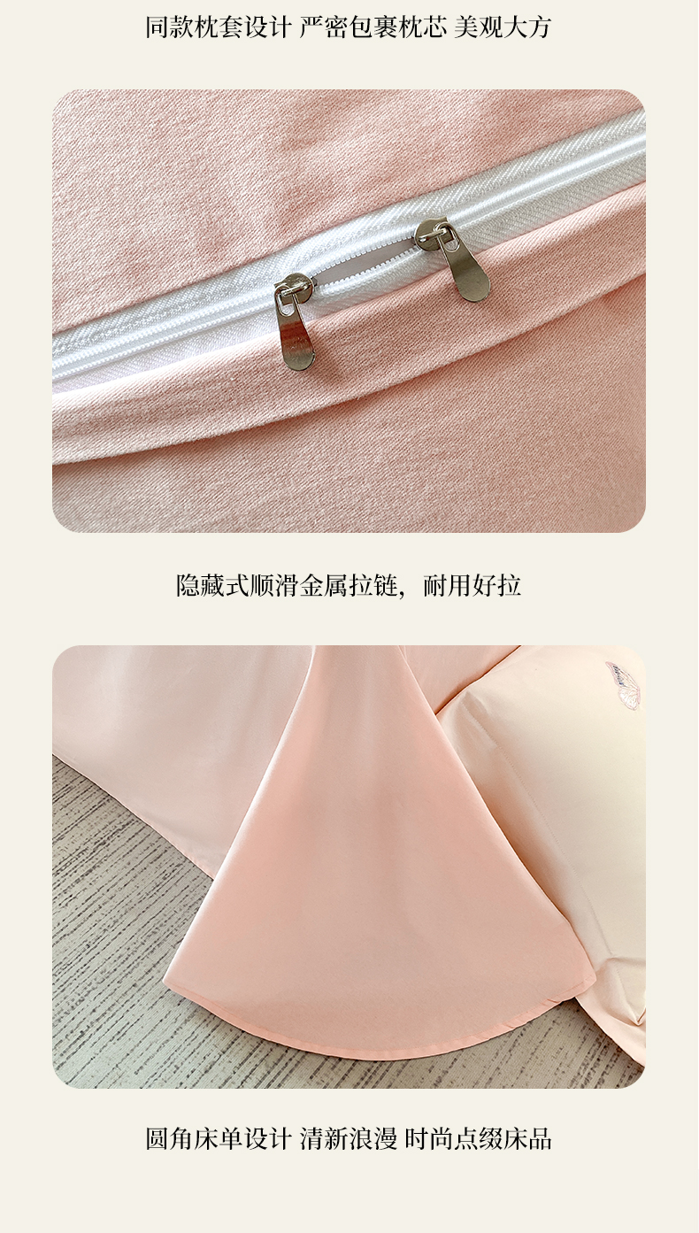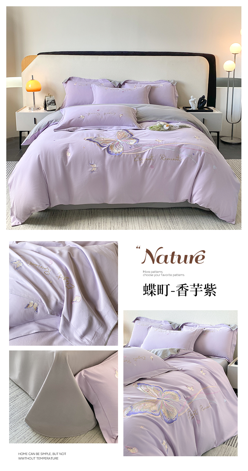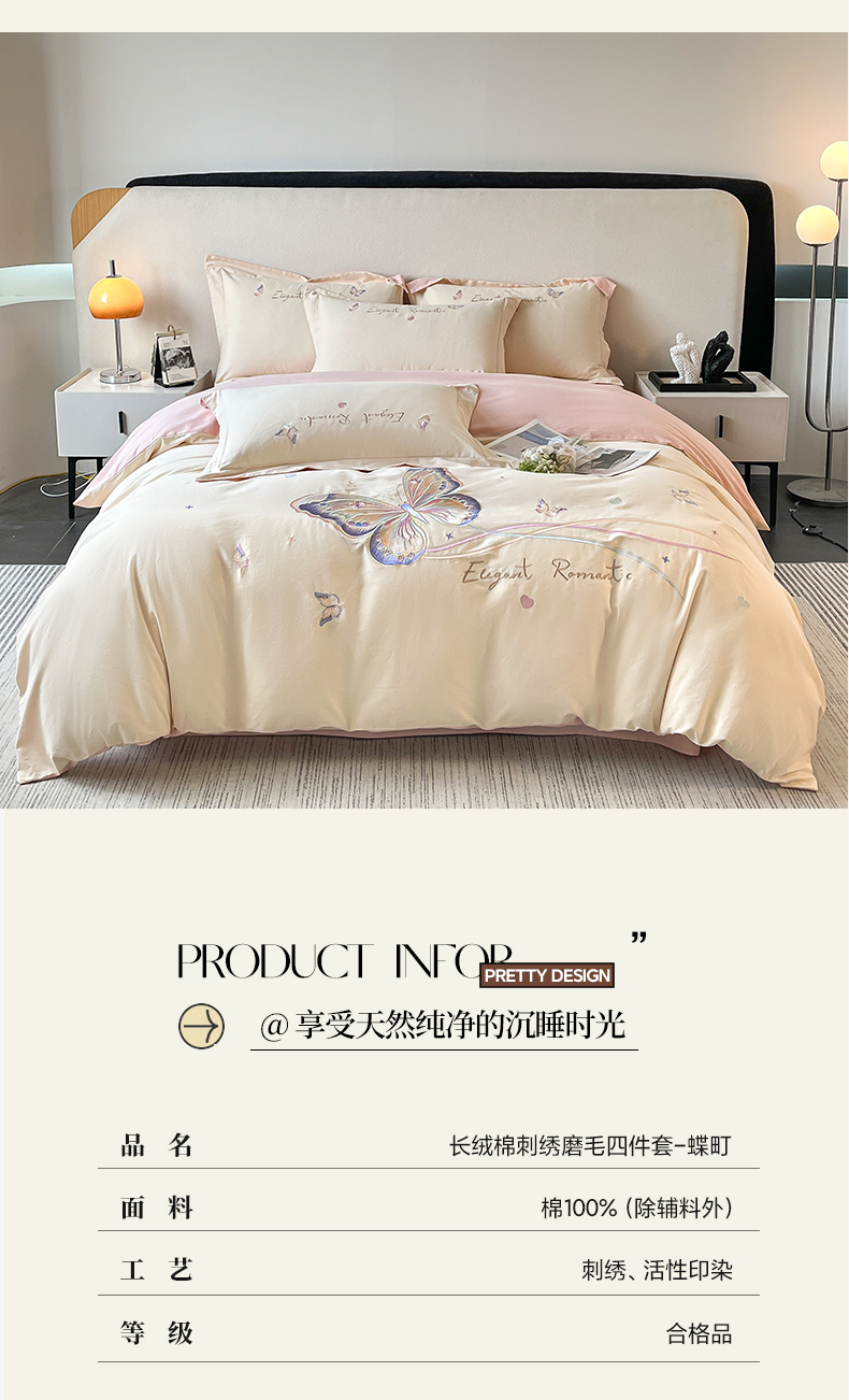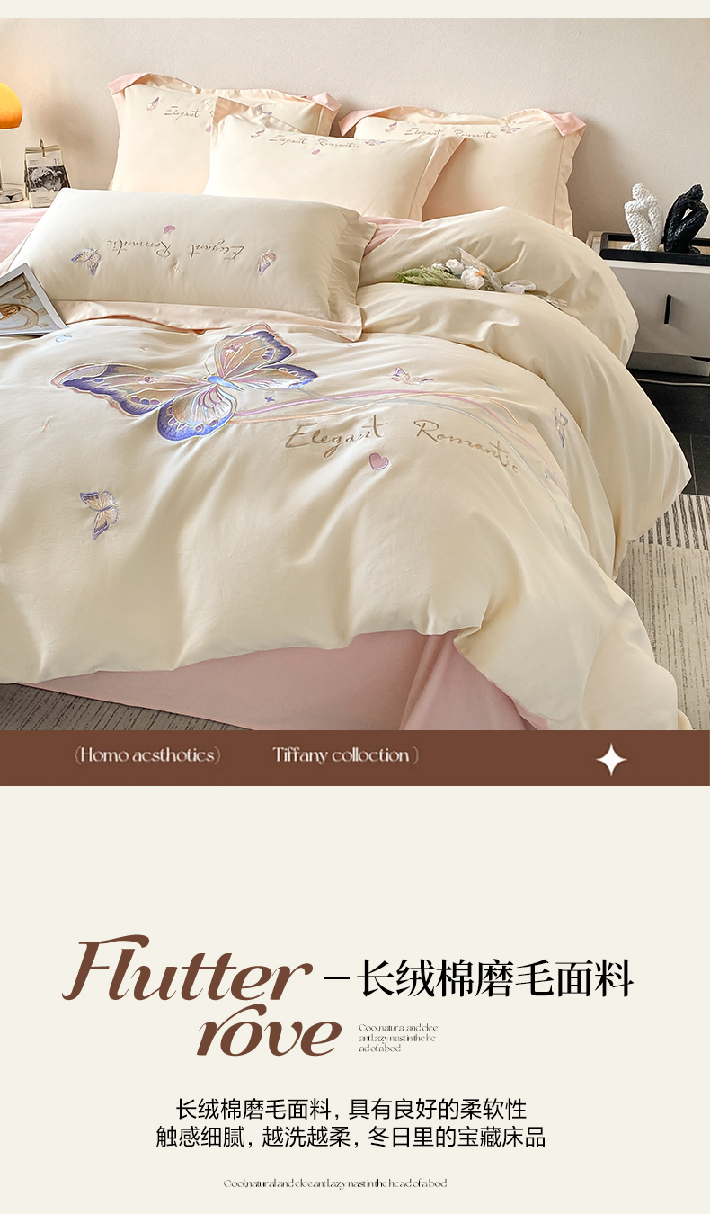 (总)桃园 新款纯棉全棉长绒棉磨毛不掉毛四件套高端礼盒-蝶町系列(包含买家秀),白粉,飘蓝,香芋紫,轻奢粉