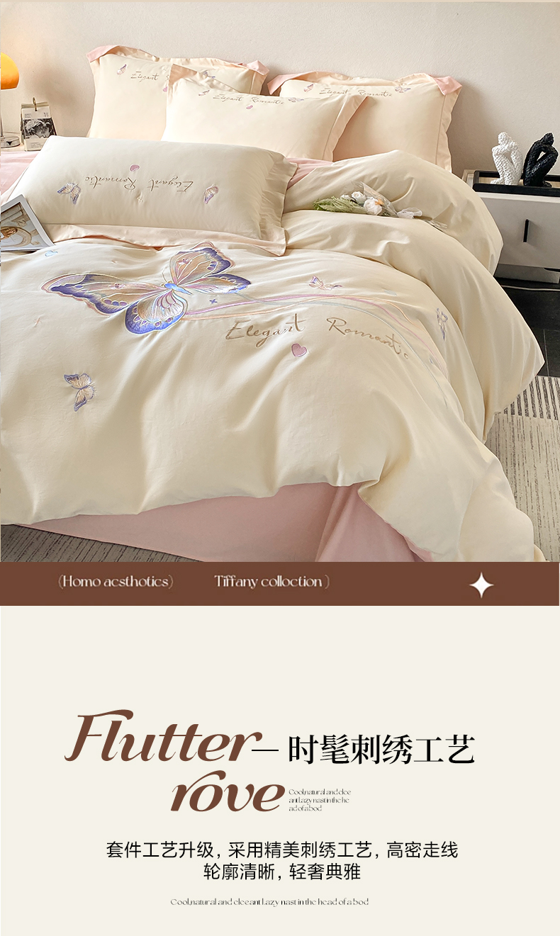 (总)桃园 新款纯棉全棉长绒棉刺绣绣花高端礼盒蝶梦园系列四件套,白粉,白紫,轻奢粉,飘蓝
