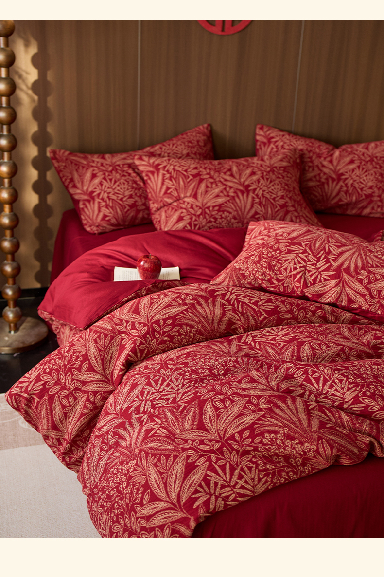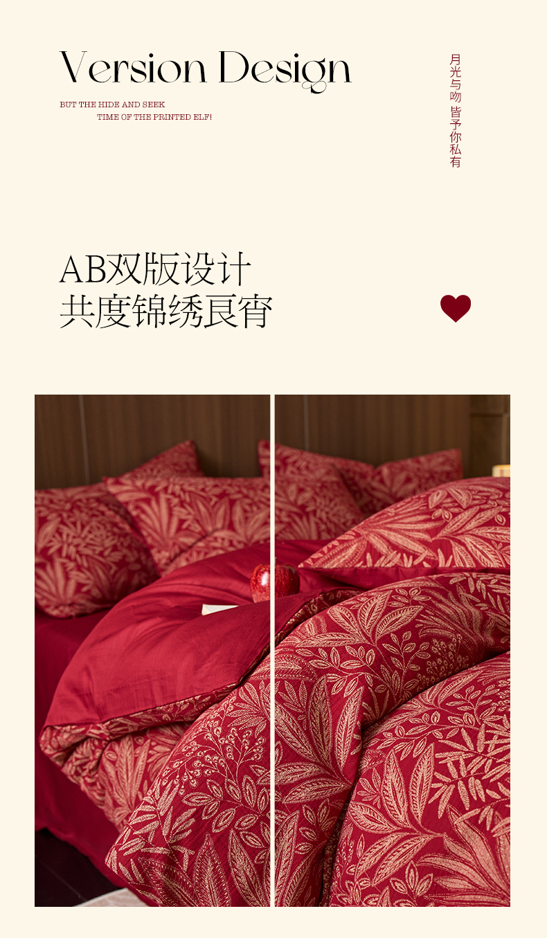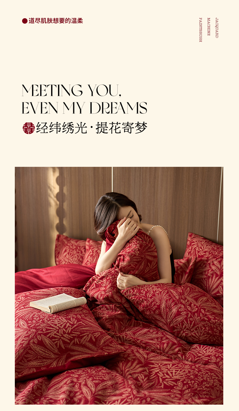 (总)千朵森 2025新款全棉色织提花大红婚庆四件套,囍意满床,囍韵繁花,叶语传喜