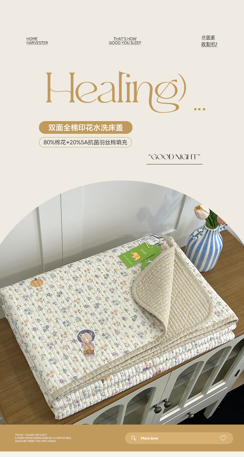 沐纯家居 2025新款跑量款双面纯棉印花水洗床盖 碎花兔熊