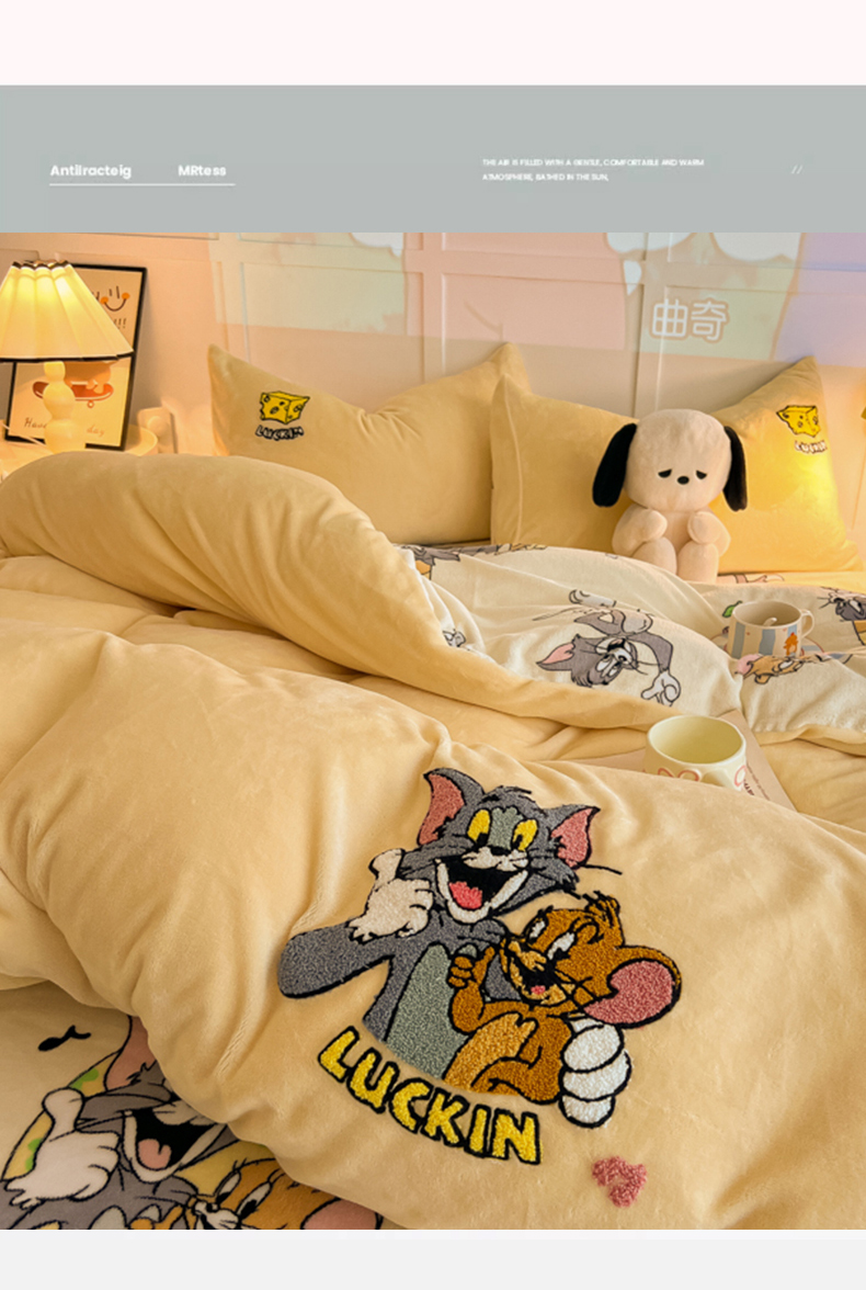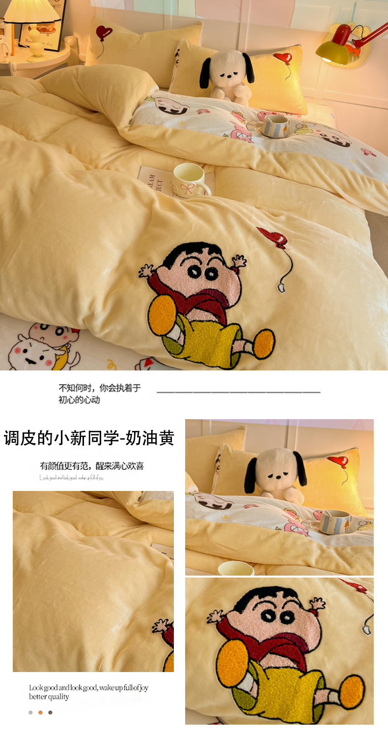 当前位置: 91家纺网 > 商品网购 > 床品套件 > 四件套 > 牛奶绒四件套 > 子钦家纺 2025新款热款牛奶绒蜡笔小新系列四件套 新款猫先生和鼠小弟奶油黄