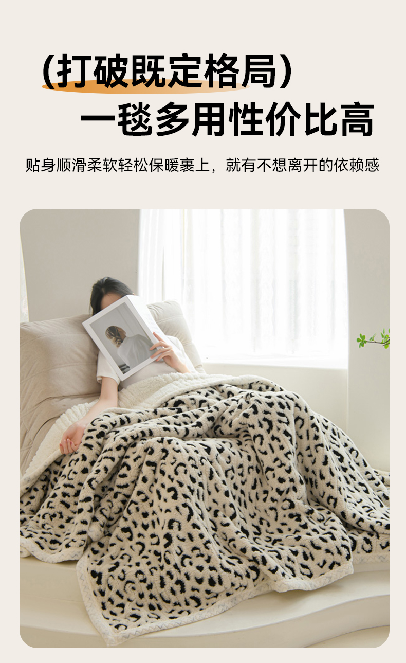 商品名称:圣楚家纺 2025新款豹纹羊羔绒双层毯 豹纹