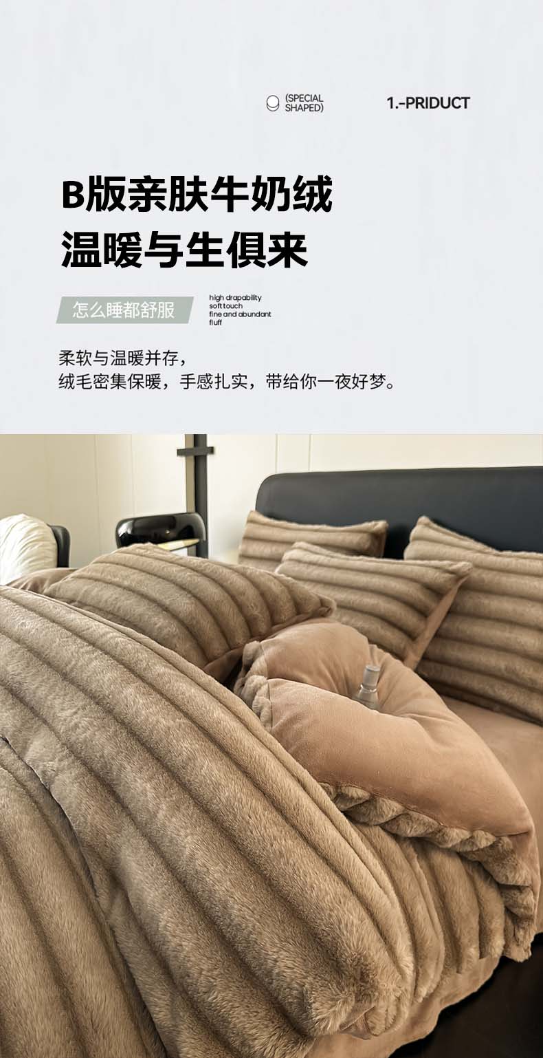 当前位置: 91家纺网 > 商品网购 > 床品套件 > 四件套 > 兔毛绒四件套 > 乐窝家纺仓储 2025新款高端定制加厚抽条兔毛床裙款四件套美拉德支持跨境外贸 时尚灰