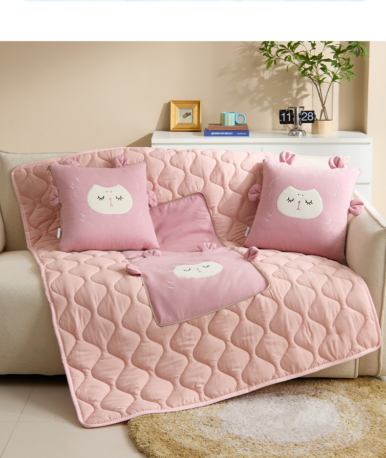 (总)金喜 2025新款高克重牛奶绒贴布卡通抱枕沙发靠枕午睡盖毯被绣萌趣男孩momo款,组合图仅供参考不可下单,秋波蓝,香芋紫,艾青绿,鸽子灰,蔷薇粉