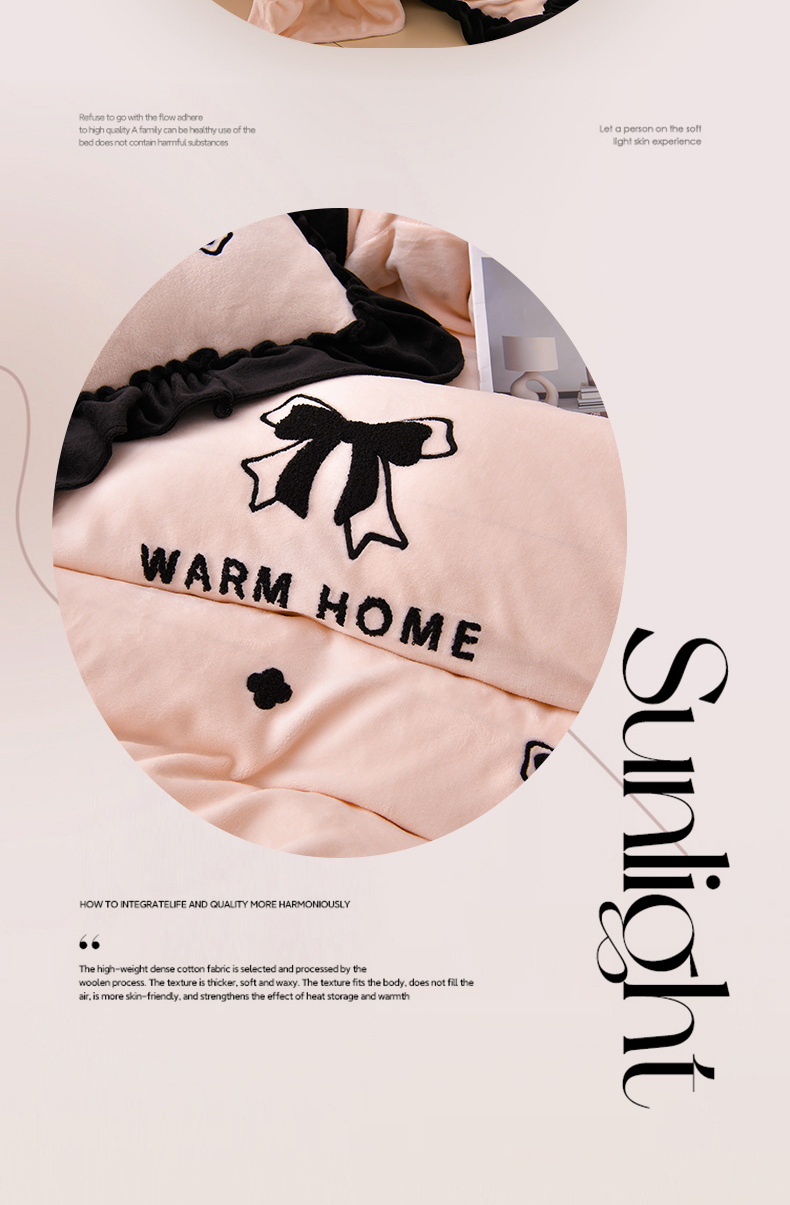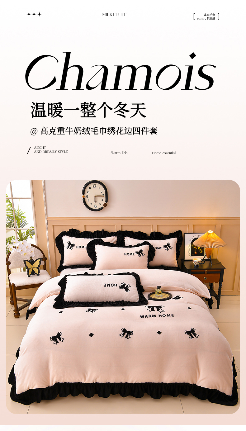梦之星 2025新款9斤毛巾绣韩式花边牛奶绒四件套 蝴蝶结-淡粉
