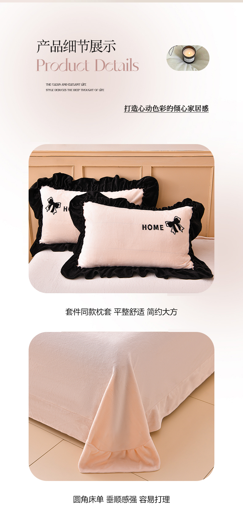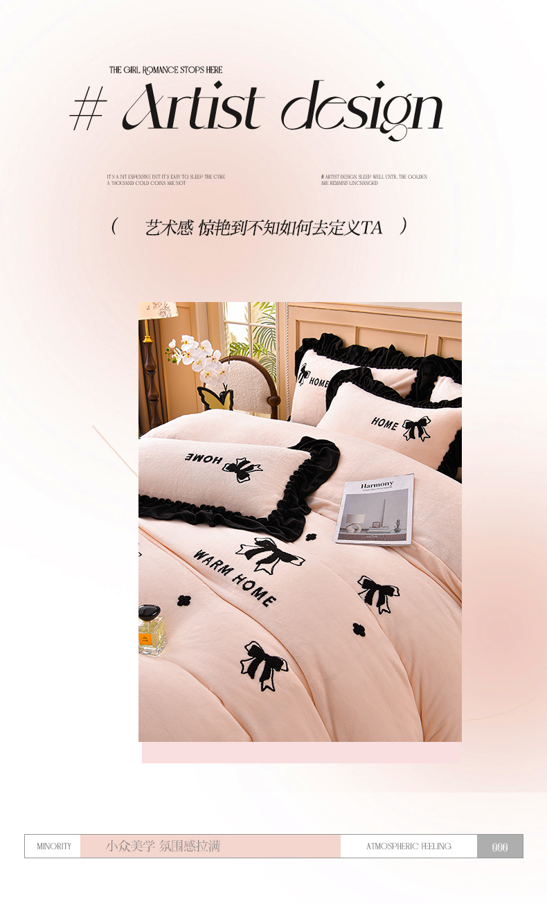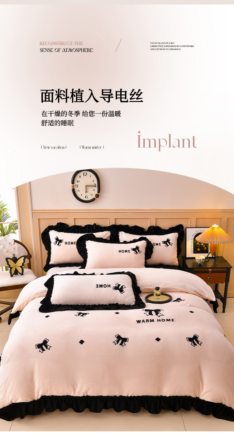 商品名称:梦之星 2025新款9斤毛巾绣韩式花边牛奶绒四件套 蝴蝶结-淡粉