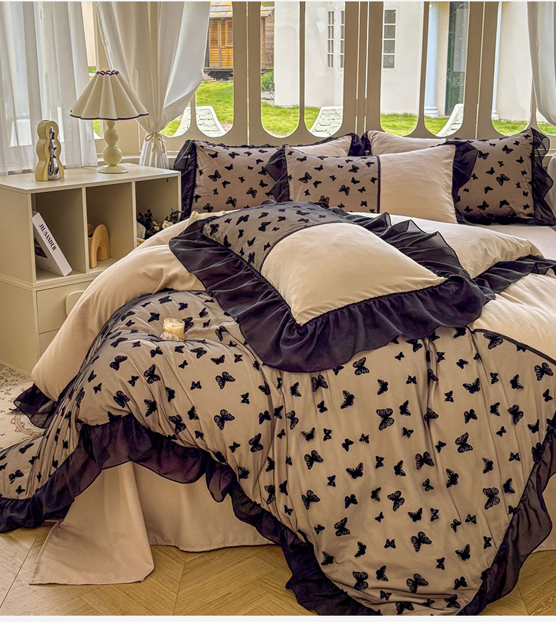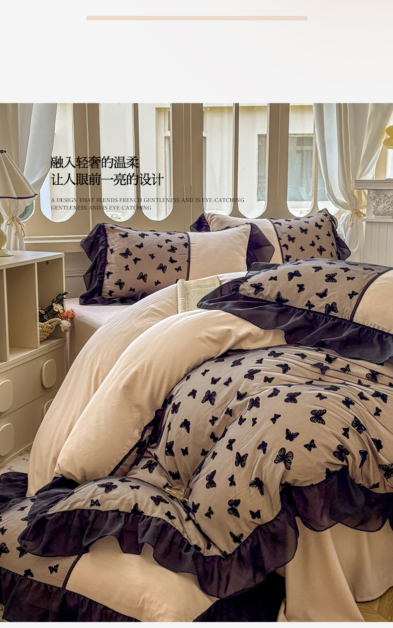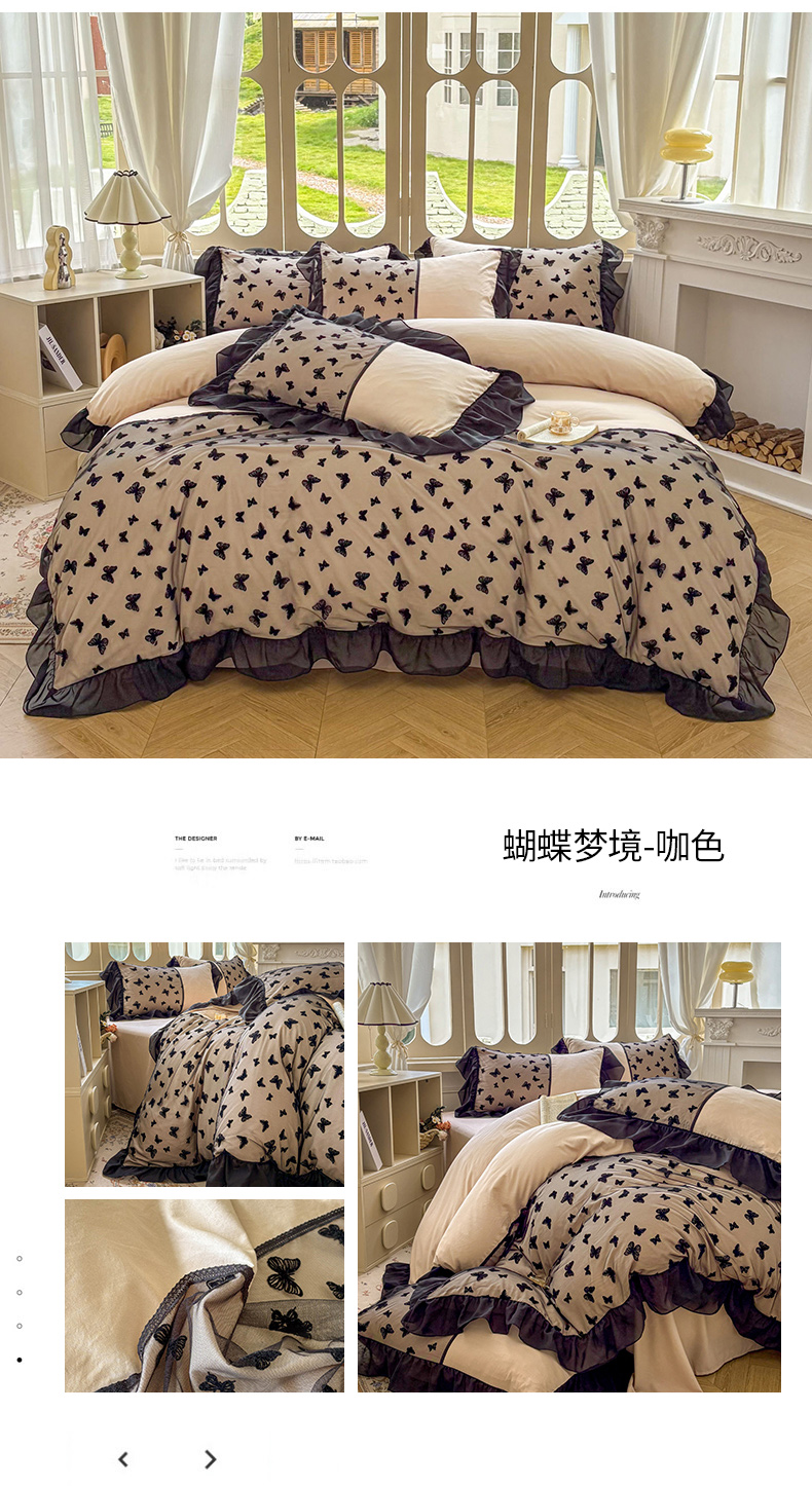 当前位置: 91家纺网 > 商品网购 > 床品套件 > 四件套 > 其它四件套 > 韩秀家纺 2025法式超柔水洗棉蕾丝花边床裙四件套工艺款床罩床笠款皱皱纱云朵棉四件套-蝴蝶梦境 蝴蝶梦境-咖色