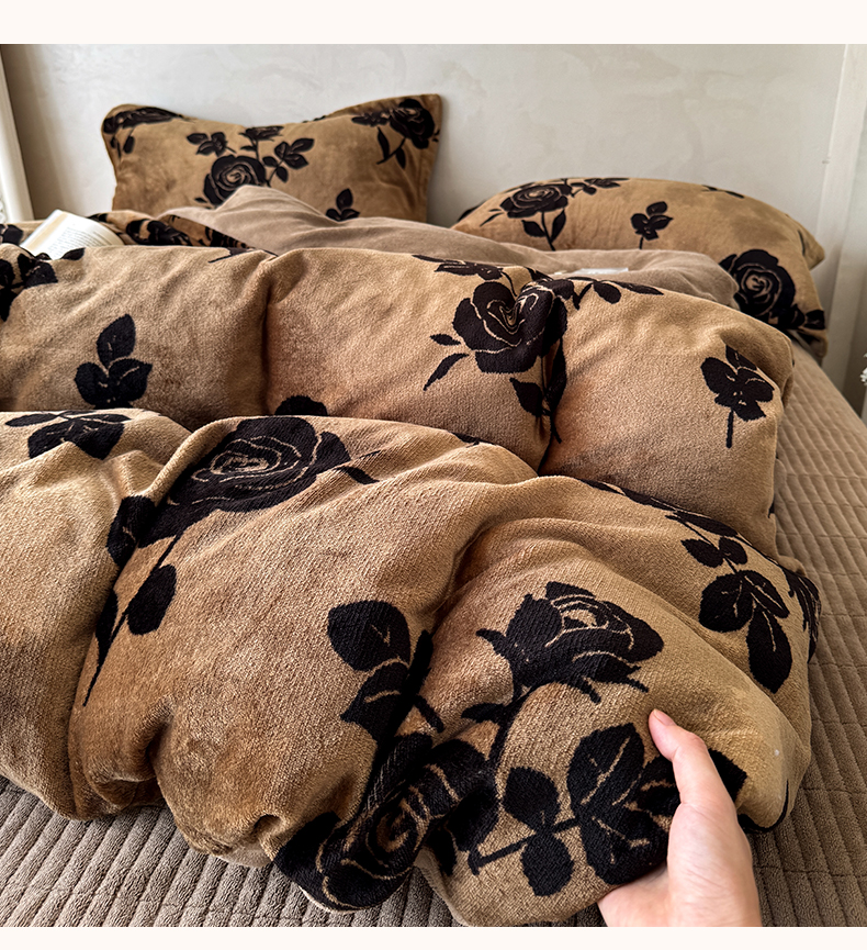 商品名称:(总)小叮当家纺仓储工厂店 买家秀 爆款花型2025秋冬新款高克重全消光牛奶绒印花大红喜庆保暖四件套直播