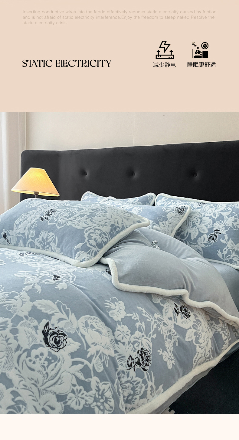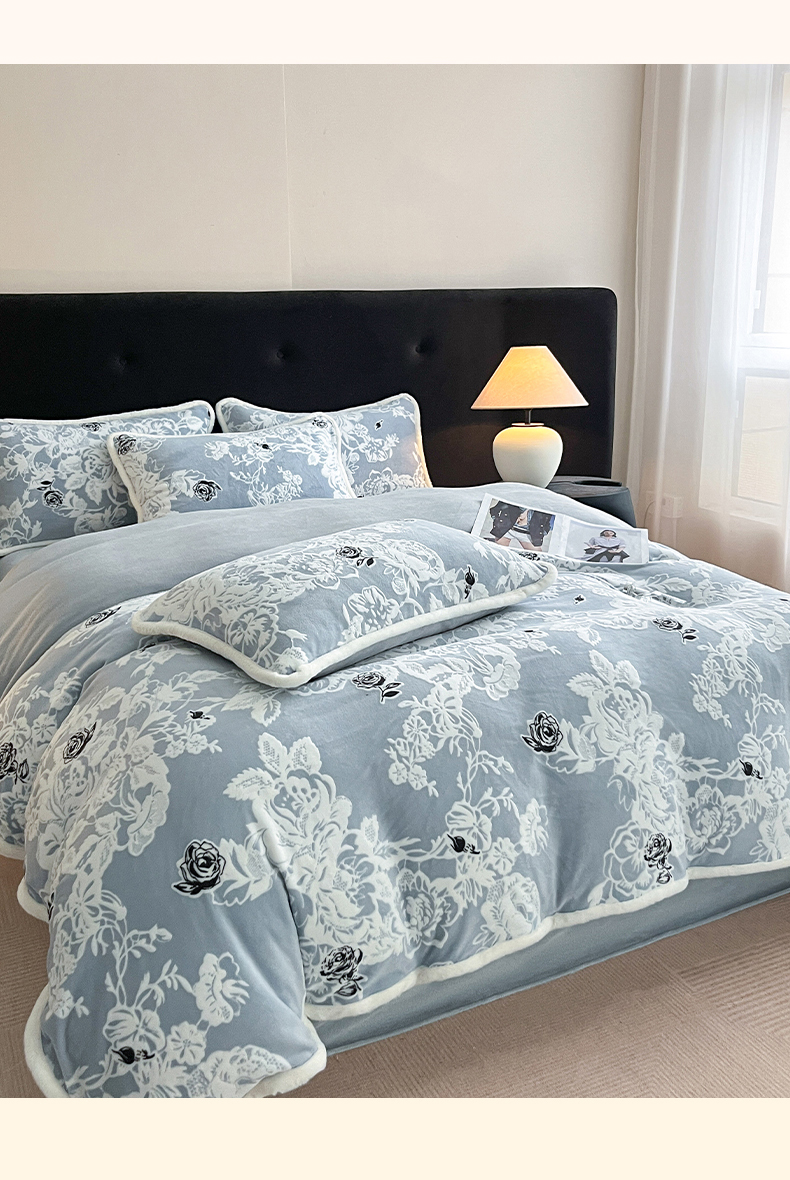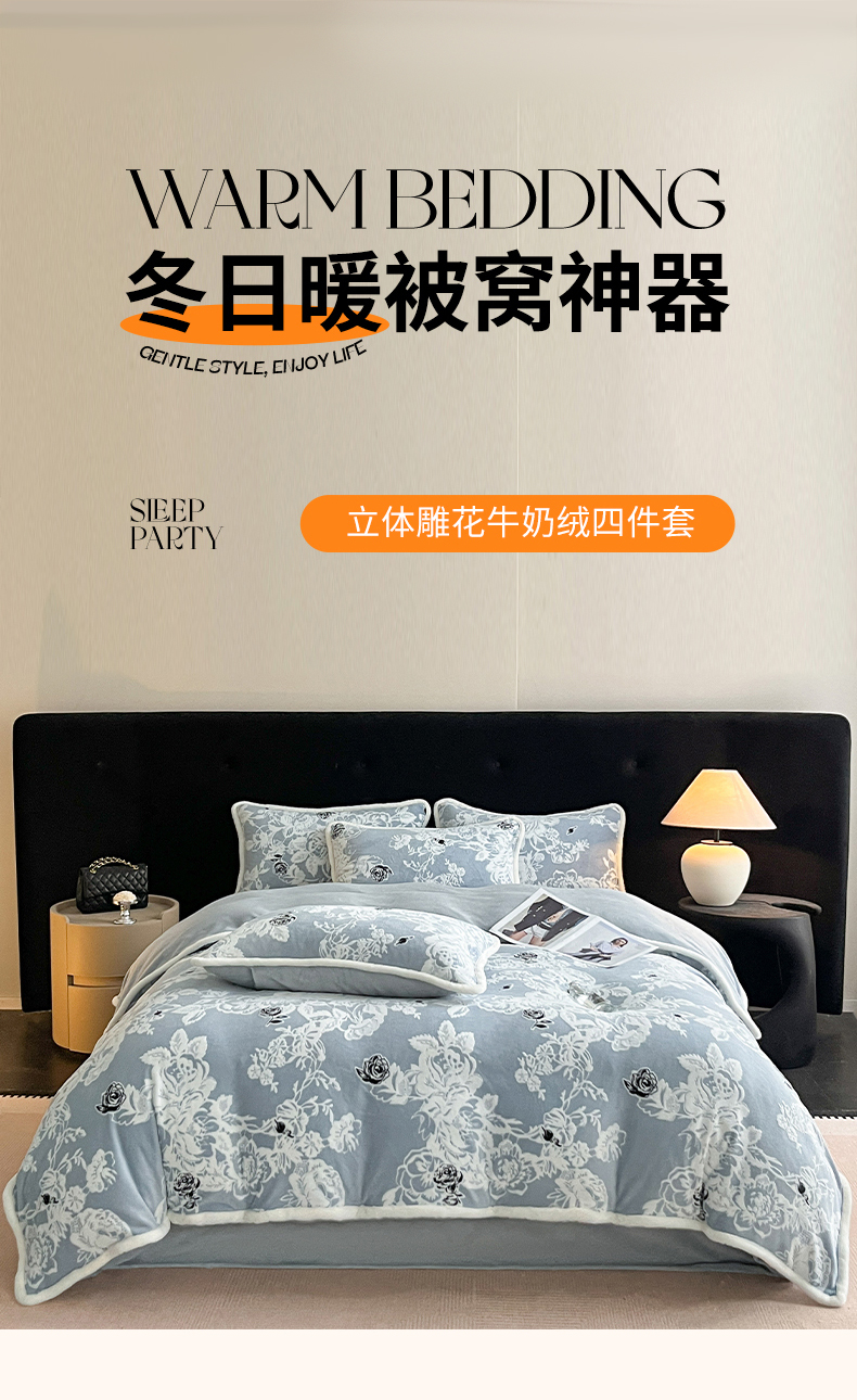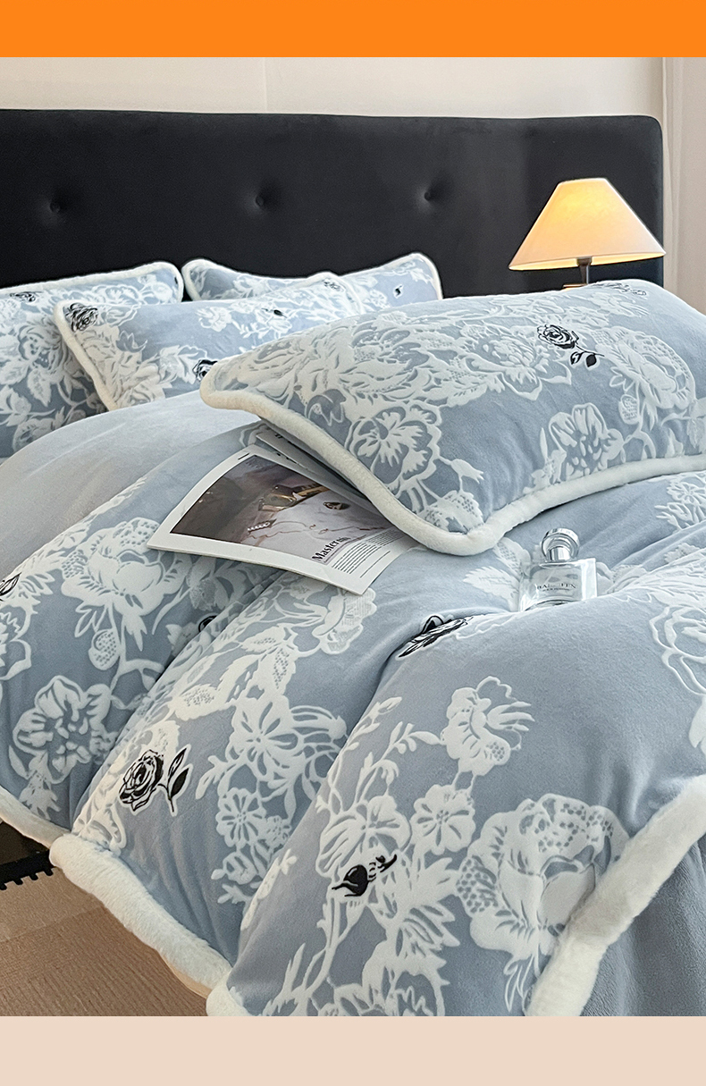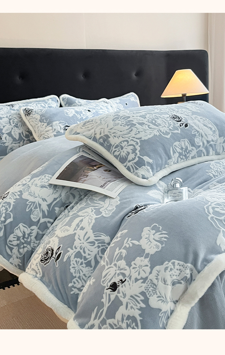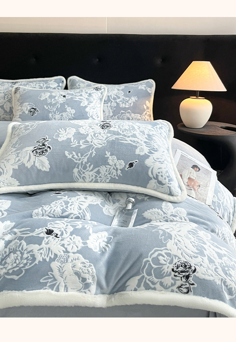 极简 2025新款立体雕花牛奶绒四件套系列 罗赛拉-蓝