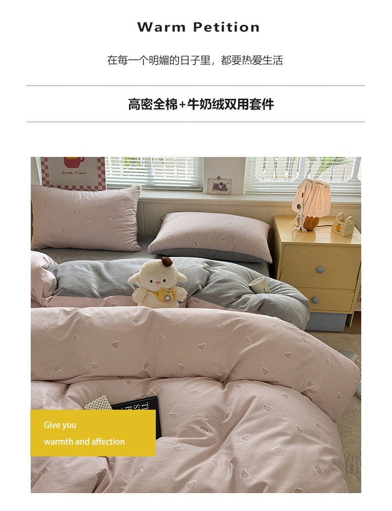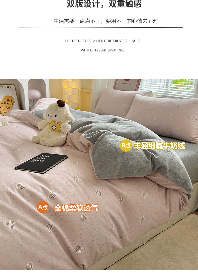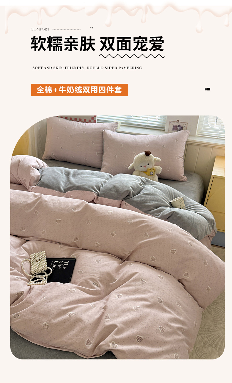 当前位置: 91家纺网 > 商品网购 > 床品套件 > 四件套 > 牛奶绒四件套 > 捌月 2025新款棉加绒A版13372全棉B版高克重牛奶绒四件套直播新品 心语