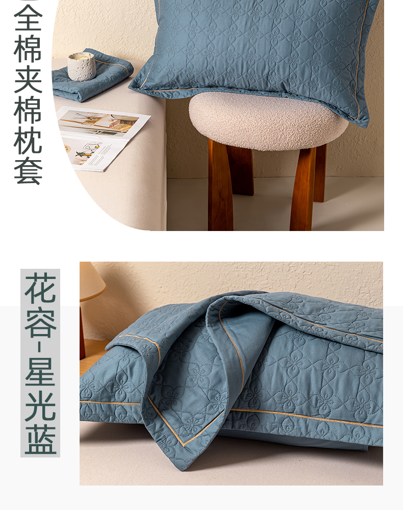 商品名称:百寐 2025新款全棉纯色加厚夹棉50*80枕套40*60/48*74纯棉枕芯保护套 花容-云水蓝