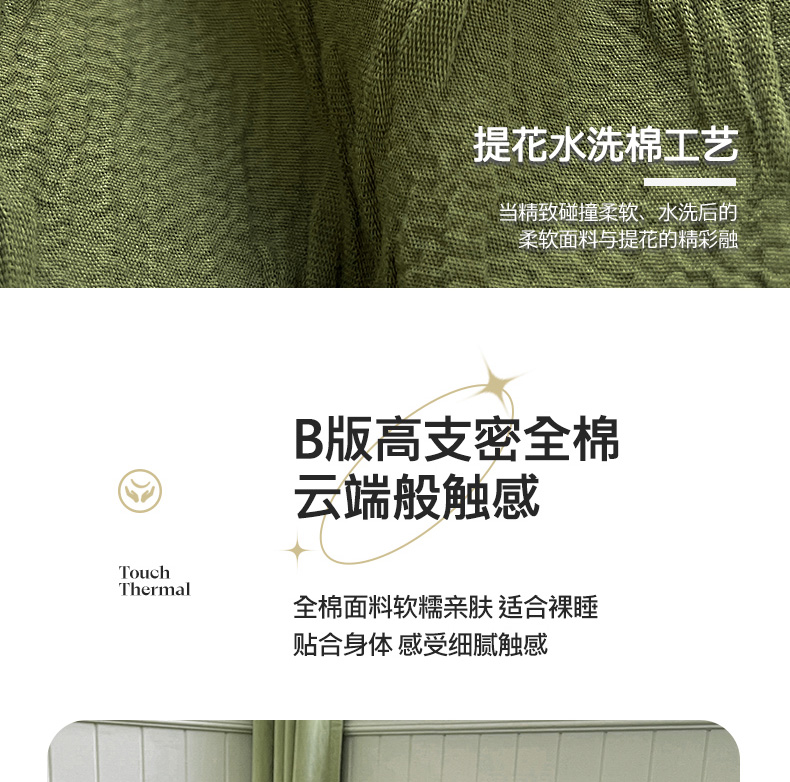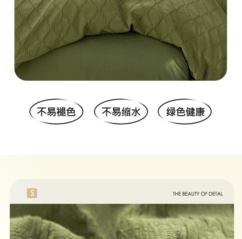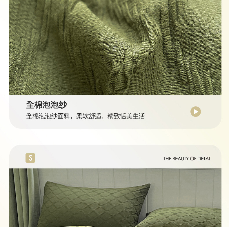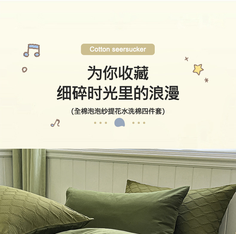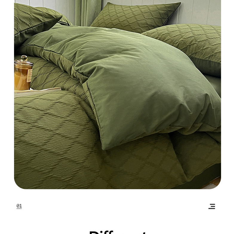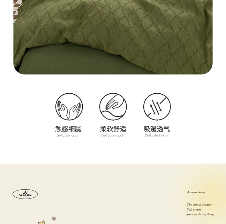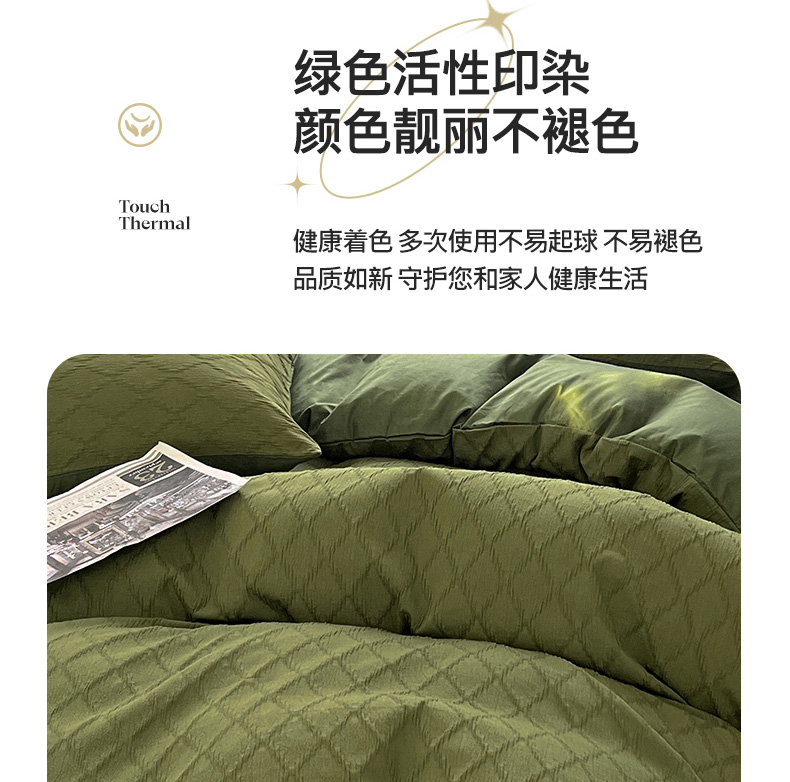 当前位置: 91家纺网 > 商品网购 > 床品套件 > 四件套 > 全棉普通四件套 > 琪格格纺织 2025新款纯棉华夫格极简宅寂风四件套 泡泡纱橄榄绿