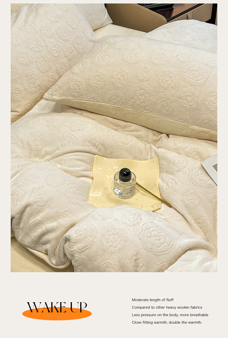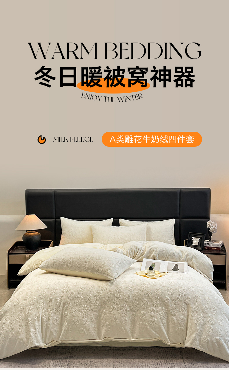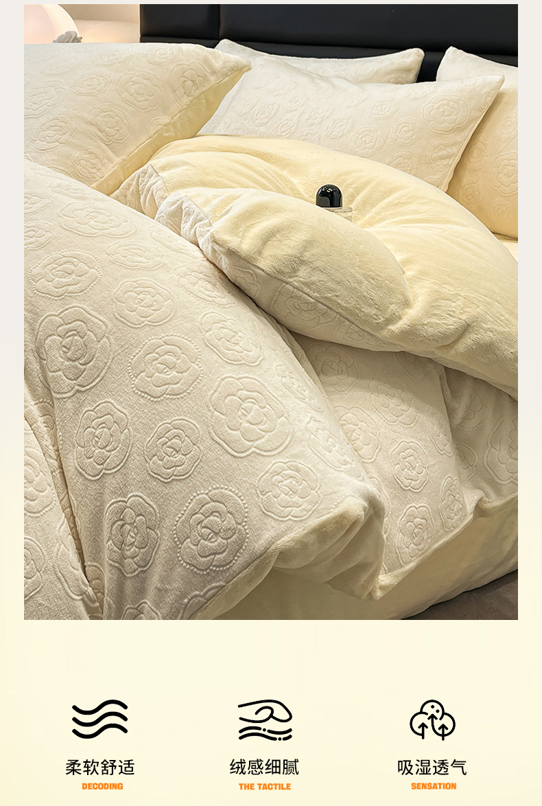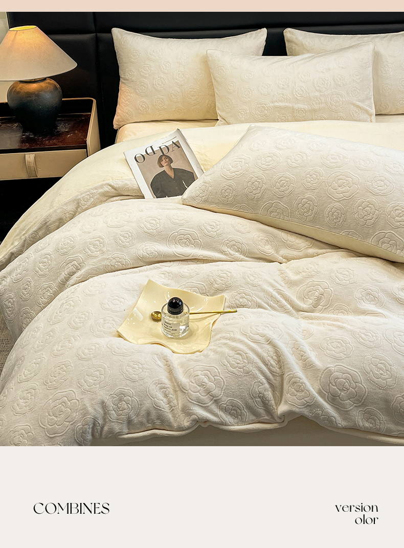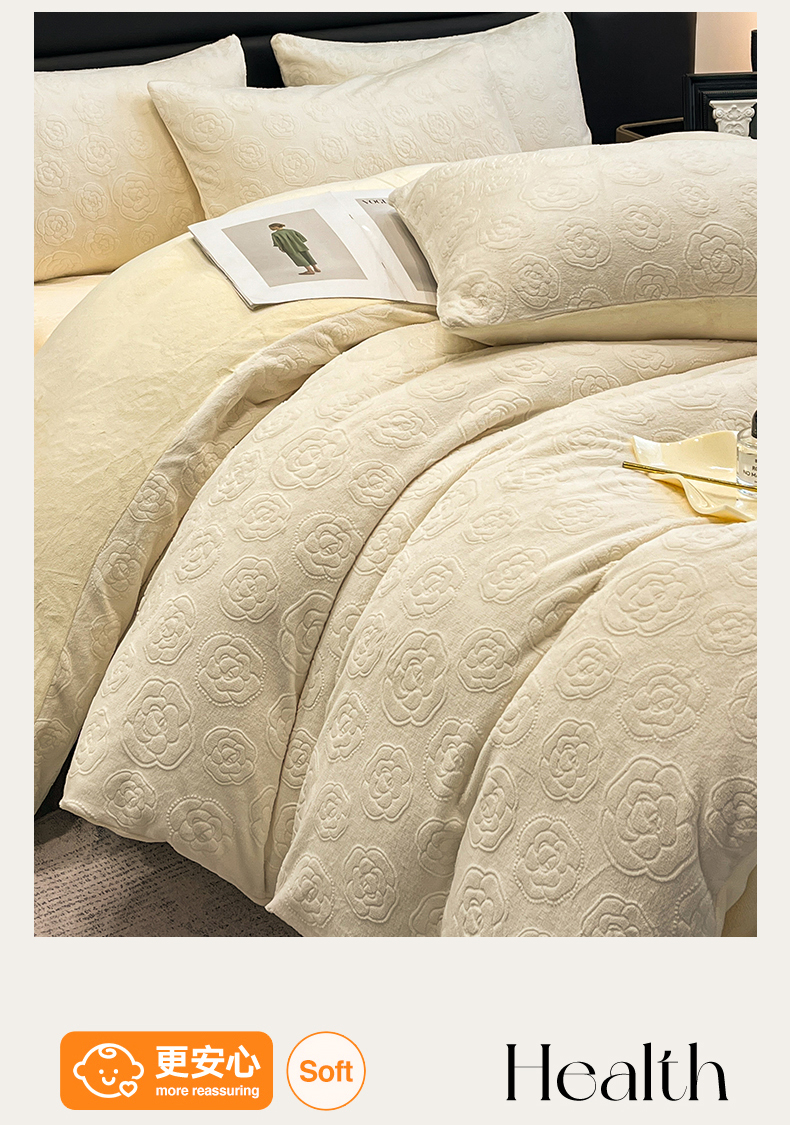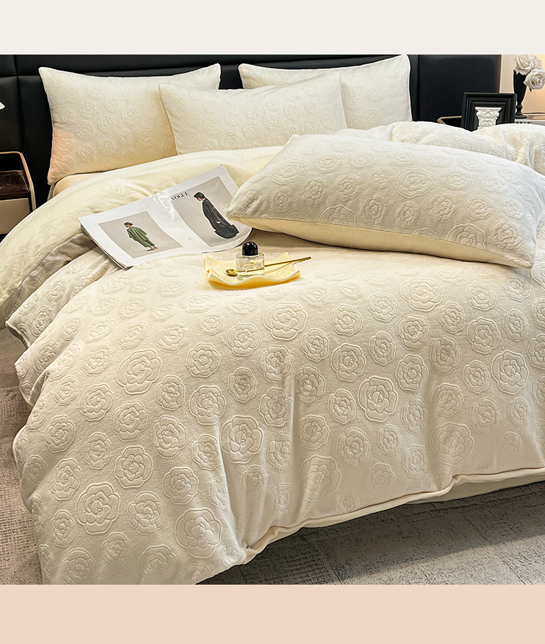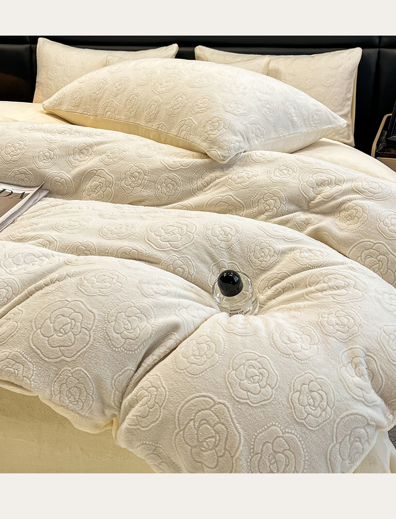 商品名称:星座家纺 2025新款牛奶绒雕花四件套 山茶花-白